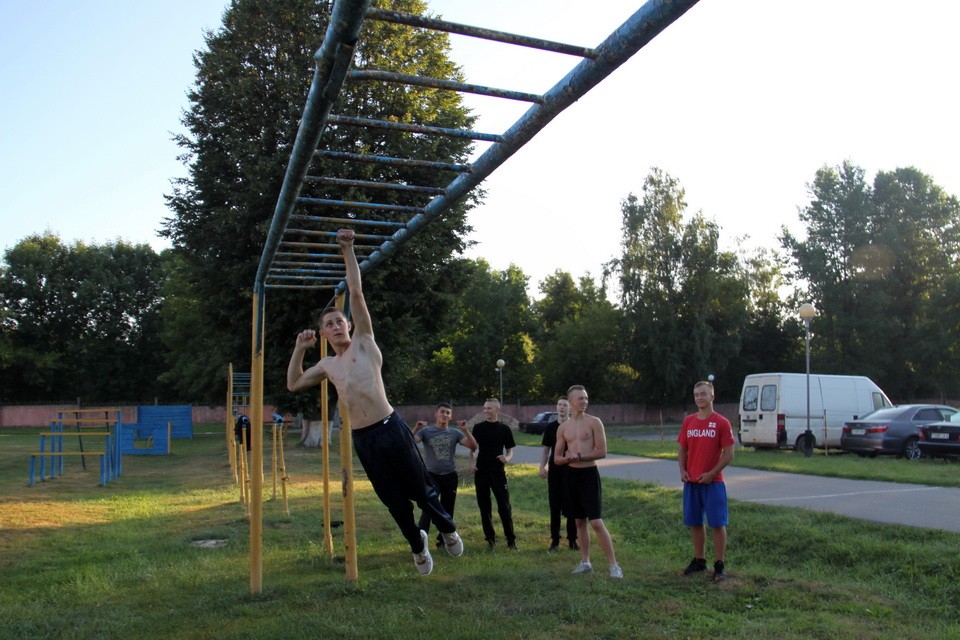 Пока я, плетясь в хвосте, восстанавливала дыхание, парни уже выполнили разминку и перешли к упражнениям на турниках. Когда начинаешь общаться с ребятами, понимаешь, почему они так легко бегают, подтягиваются, отжимаются и крутят сальто. Илья Гарнак и Егор Лысенко 4 года занимаются легкой атлетикой, а Егор еще и боксом 2 года. Егор Зимарев вообще считает, что в жизни нужно попробовать все: карате, дзюдо, плавание, лыжи, спортивную гимнастику и воркаут.