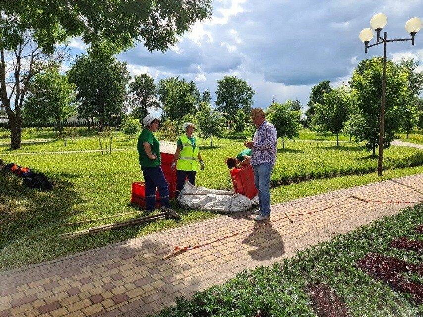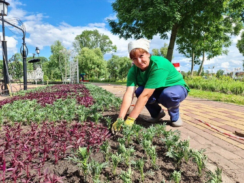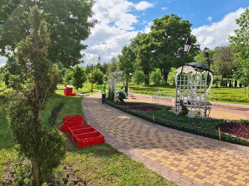 В городском парке Подниколье с утра кипит работа: сотрудники предприятия «Могилевзеленстрой» на импровизированных площадках создают цветники.
