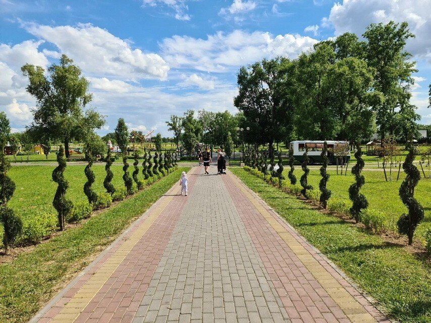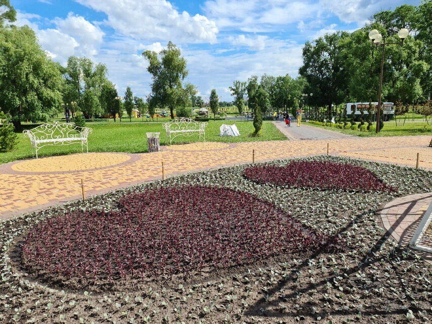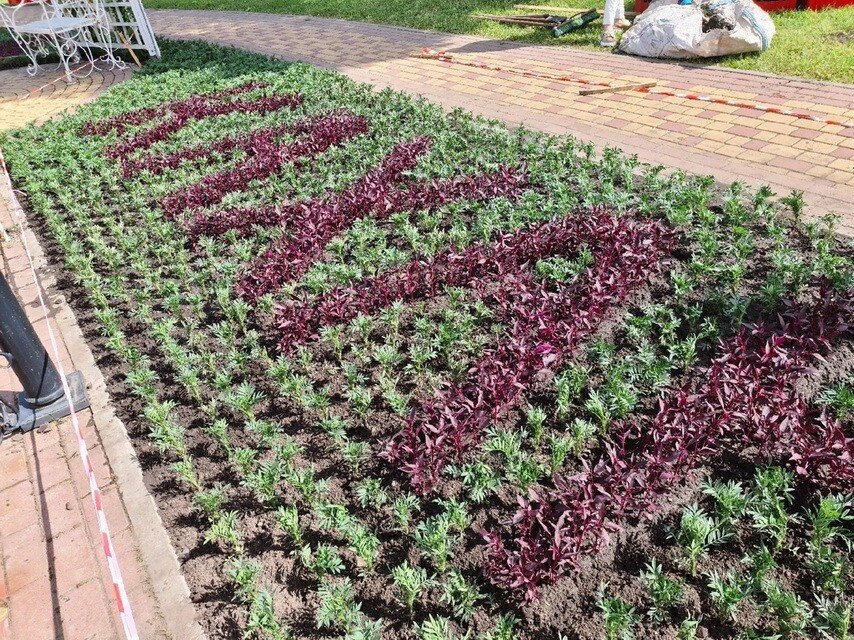 Одна из таких цветочных картин появилась в так называемой «свадебной зоне» парка. Работники предприятия кропотливо трудились над ее созданием два дня.