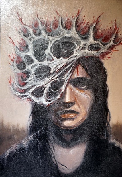 Что касается автопортрета в названии выставки, то каждый видит его по-своему. Например, Татьяна Козинец представила альтер эго в картине под названием «У медали две стороны».