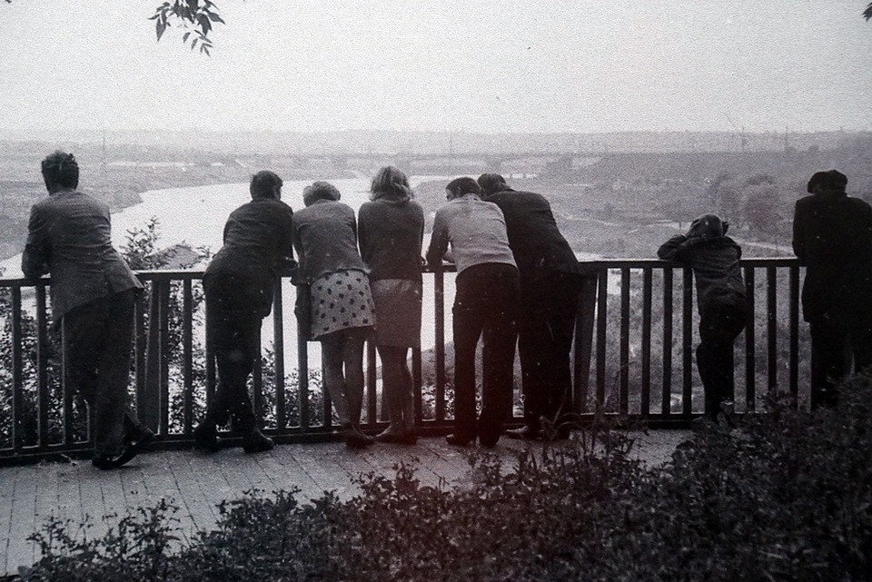 А дальше еще несколько лестничных пролетов с фото, на которых Анатолий Толкачев запечатлел течение времени. Поднимаясь по ступенькам, глядя на черно-белую историю города на Днепре, чаще бьется сердце рожденных в некогда великом и могучем Советском Союзе. Происходит виртуальное возвращение в ту эпоху.