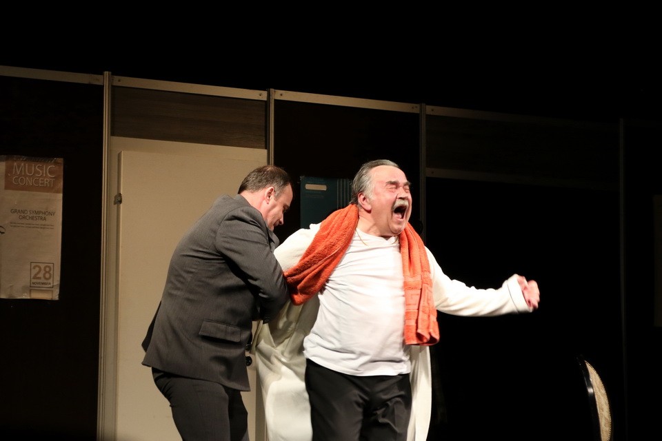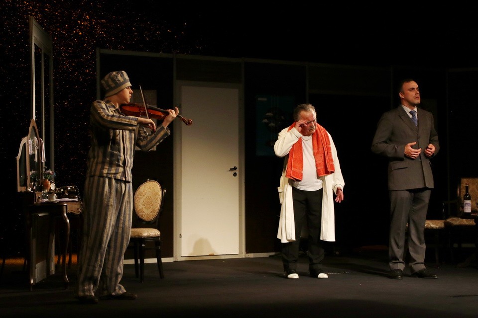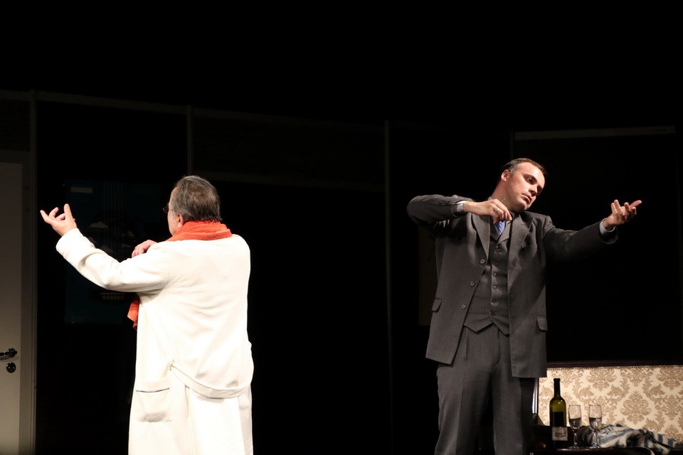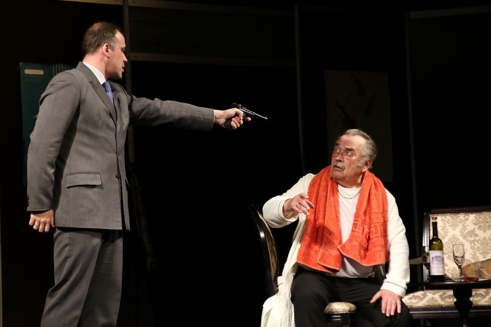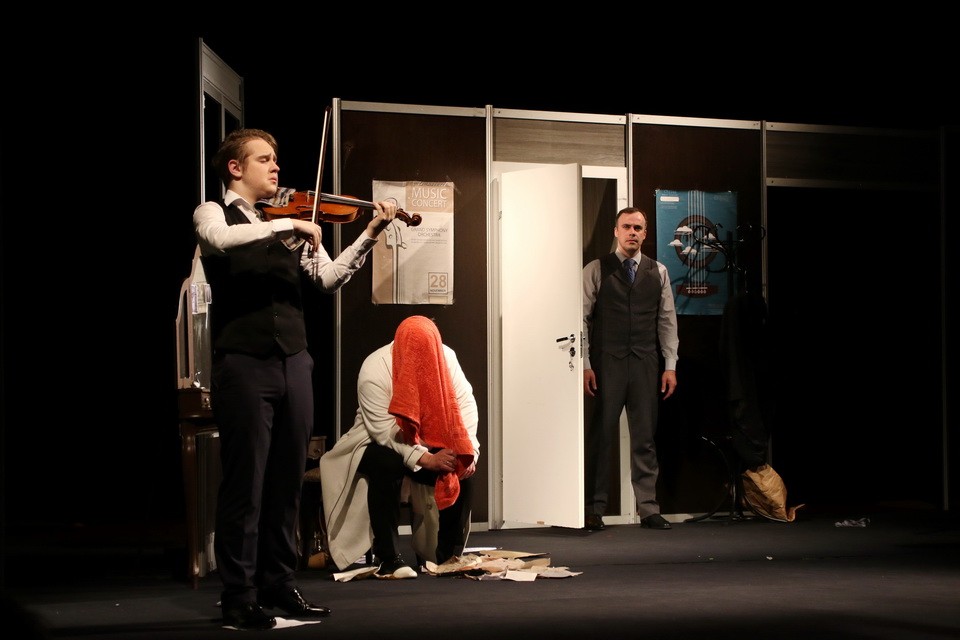 В спектакле мало действий, практически полностью он состоит из долгого и тяжелого разговора. Но благодаря актерской игре это незаметно. Владимир Мищанчук и Сергей Лапаницын проживают роли на сцене так, что, кажется, не спектакль смотришь, а подглядываешь. На кульминационных моментах – раскаяние, боль воспоминаний о несправедливо убитом отце, страх умереть или быть уличенным в ужасающем вранье. Глаза актеров слезятся. Зрительские – тоже. Минута тишины после последней чистой ноты скрипки – и зал взрывается овациями. Редкий спектакль, даже фестивальный, встречают такими овациями.