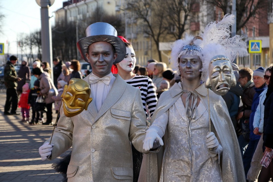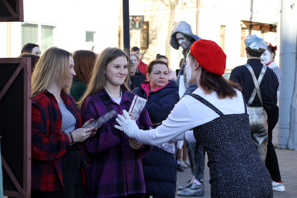 В Могилевском драмтеатре – аншлаг. Билеты на открытие разошлись первыми. Актеры встречают гостей перфомансом не только внутри храма Мельпомены, но и на улице, ведь «М.@rt.Контакт» – долгожданный праздник не только для заядлых театралов, но и для всех могилевчан.