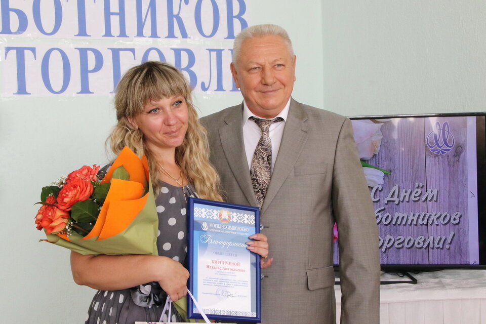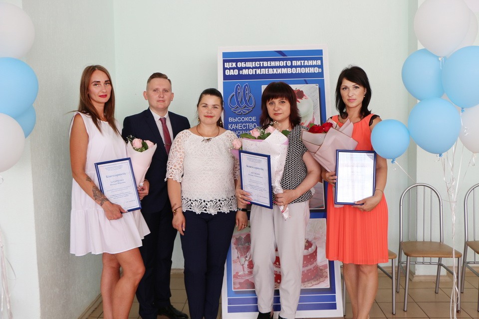 Поэтому в этот праздник награды, как никогда, заслужены! Почетной грамоты от администрации Октябрьского района удостоена продавец столовой №140 Валентина Брилева, а от ОАО «Могилевхимволокно» – ведущий экономист цеха общественного питания Елена Косякова. Благодарности вручили администратору кафе «Элегия» Юлии Силкиной, продавцу столовой №57 Наталье Кирпичевой, продавцу магазина №1 Ирине Рогачевой, начальнику цеха общественного питания Ольге Шутовой. Работники цеха также получили благодарности от профсоюзного комитета ОАО «Могилевхимволокно», редакции газеты «Трудовая слава» и городской организации ОО «Белорусский союз женщин».