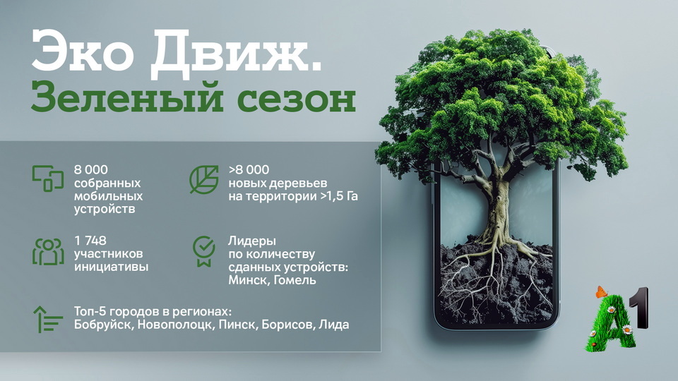 В рамках инициативы «Эко Движ. Зеленый сезон» с 4 марта по 7 апреля жители Беларуси могли регистрироваться на сайте re.a1.by и сдавать свои старые мобильные телефоны, планшеты, смарт-часы, электронные книги и фитнес-браслеты в магазины А1.