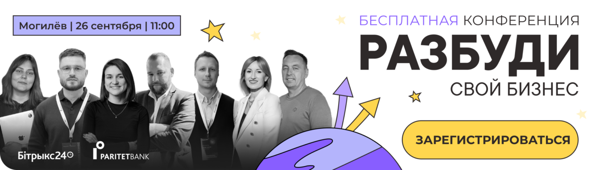 Хотите навести порядок в бизнес-процессах? Приходите на бесплатную конференцию и узнайте, как это сделать! 26 сентября в Могилеве приглашаем вас на практическое бизнес-событие от онлайн-сервиса «Битрикс24» и ОАО «Паритетбанк». Эксперты расскажут, как превратить лайки в продажи, ускорить рабочие процессы и решать производственные задачи вместе с поколением зумеров. И это ещё не всё! Цифровизация оптимизирует процессы и улучшает клиентский опыт. Спикеры от ОАО «Паритетбанк» расскажут о банковских онлайн-решениях, которые позволяют пользоваться продуктами и услугами из любого города и экономить время для занятия своим любимым делом.