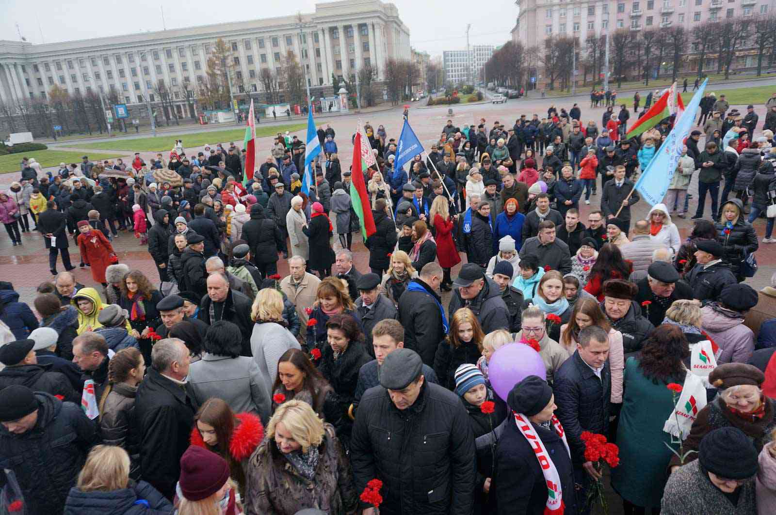 В Могилеве на центральной площади у памятника В.И. Ленина состоялся митинг, посвященный 100-летию Октябрьской революции.