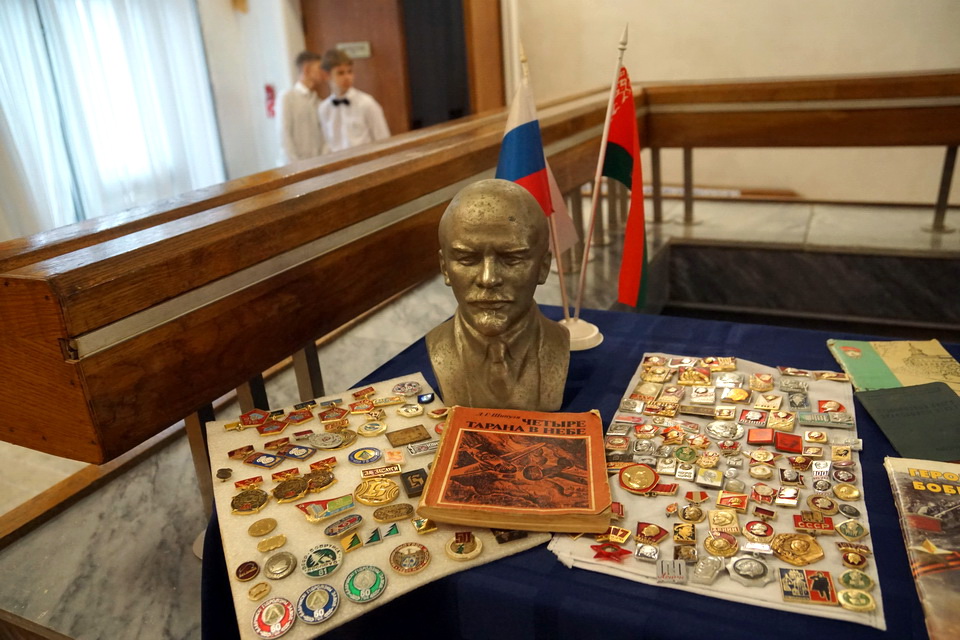 Предваряла его выставка, развернувшаяся в холле гимназии. В экспозиции много комсомольской атрибутики. Для тех, у кого до сих пор хранится комсомольский билет, — это свидание с юностью.