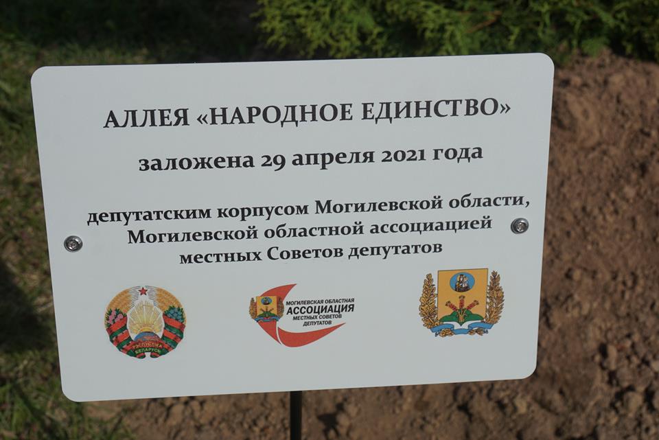 Аллею «Народное единство» заложил депутатский корпус Могилевщины и областная ассоциация местных Советов депутатов. Возле мемориального комплекса «Буйничское поле» они высадили 18 туй.