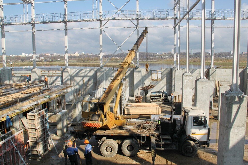 Сейчас приступили к строительству бассейнов. В 50-метровом можно будет проводить международные соревнования. Во втором бассейне длиной 25 метров с 4 дорожками будут учить детей плаванию: глубина чаши будет не более метра. Бассейны обеспечат всем необходимым оборудованием для учебно-тренировочного процесса и соревнований. И даже подъемником для людей с ограниченными возможностями. Полностью завершить объект планируют до конца года.
