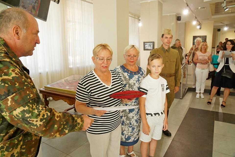 В Выставочном зале Могилева во время открытия экспозиции «Война – совсем не фейерверк» состоялась церемония передачи наградной медали «За боевые заслуги» фронтовика Владимира Доросевича его дочерям.