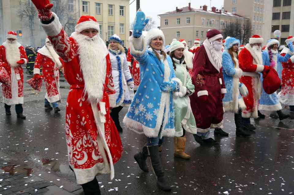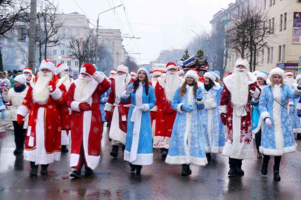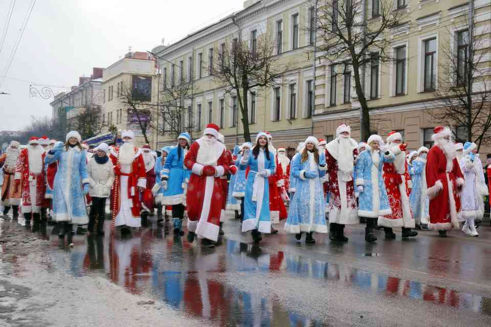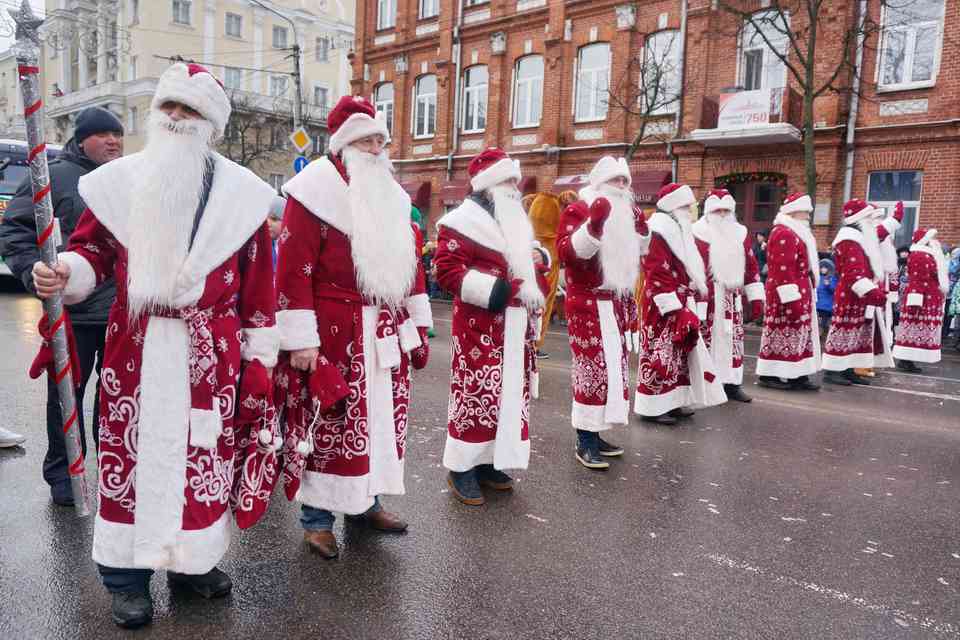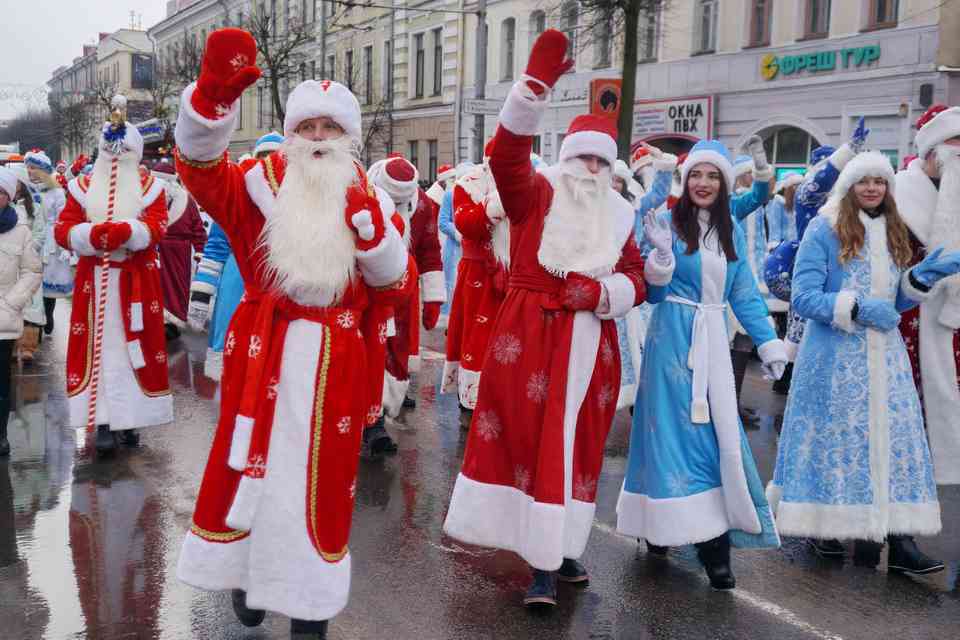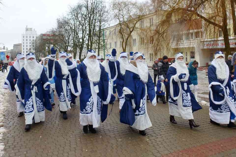 Яркое театрализованное шоу наблюдали могилевчане, собравшиеся 25 декабря на традиционное шествие Дедов Морозов.