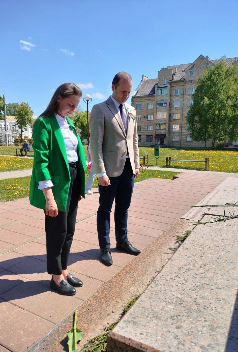 В канун Дня государственного гимна, герба и флага член Совета Республики и Национального собрания Дмитрий Воронюк с активом городского комитета ОО БРСМ возложили цветы к памятнику «Дети мира — Детям войны».