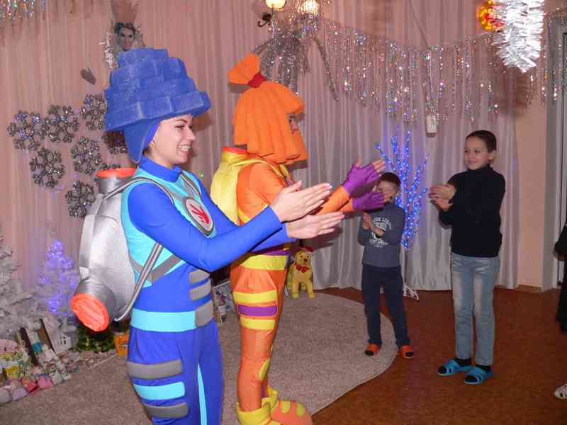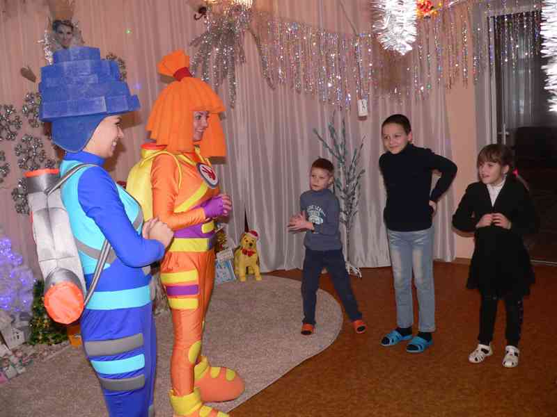 Взрослые приехали к ребятишкам не с пустыми руками, привезли оригинальные подарки от Снегурочек. Во время городского конкурса, в котором выбирали главную Снегурочку Могилева, конкурсантки готовили подарки для детей, находящихся в приюте. Развивающие игры, часы, конфеты на елках и много других презентов привлекли внимание малышей. Но самым необычным для них стало общение с Фиксиками, в роли которых выступили Ольга Дмитрачкова и Лена Ладесова. Артистичные девушки играли, танцевали с ребятней. Любимые мультяшные герои в процессе общения познакомились с детьми, подарили каждому подарок, а именинника чествовали с особым почетом.