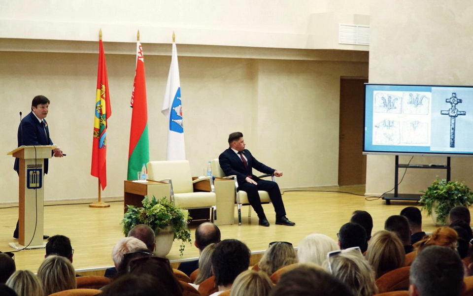Игорь Марзалюк детально, с разбором мифологем, показом текстов, рассказал присутствующим обо всех гербах, гимнах и флагах, которые существовали в Беларуси, о кличах, которые, как считается многими, олицетворяют ту или иную национальную идею. Профессор поведал о том, кто их создавал, как и кто использовал, о традициях, которые маркируют возникновение белорусской государственности, о цветах символики, их позитивной и негативной коннотации. Игорь Марзалюк отметил, что флаг, герб и гимн для любого государства – это триединая важнейшая составляющая, по которой страну и нацию узнают во всем мире.