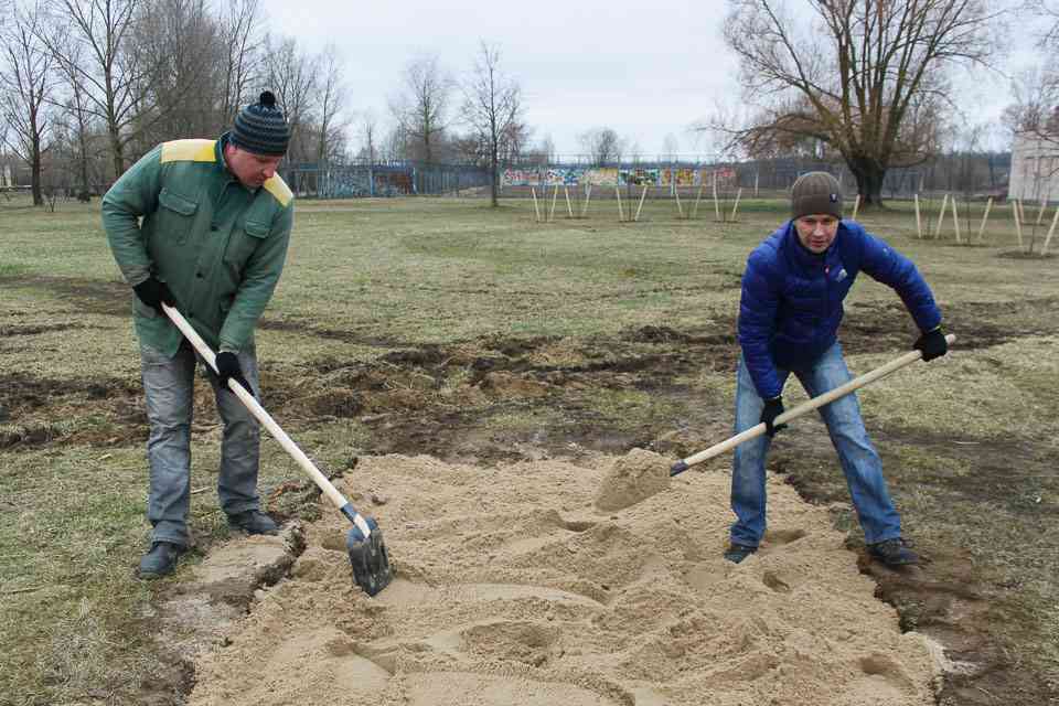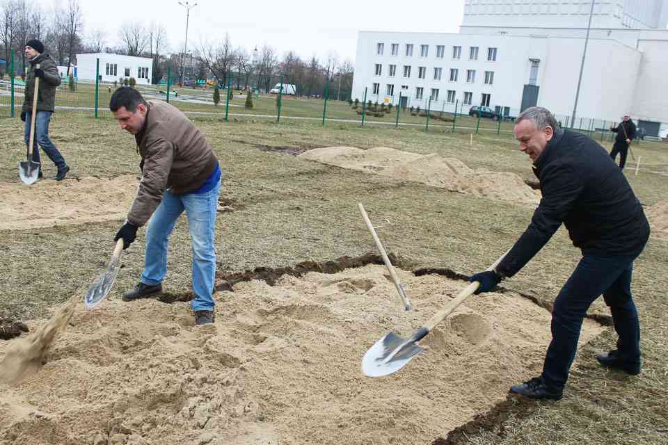За Дворцом культуры области рядом с площадкой для мини-гольфа началось строительство площадки для игры в городки. «Есть задумка сделать всю территорию за концертным залом – уголком приверженцев здорового образа жизни, – поделился планами председатель Моггорисполкома Владимир Цумарев также принявший участие в субботнике. – Уже в мае этого года здесь можно будет поиграть в городки. Рядом построим площадку для хоккея на траве».