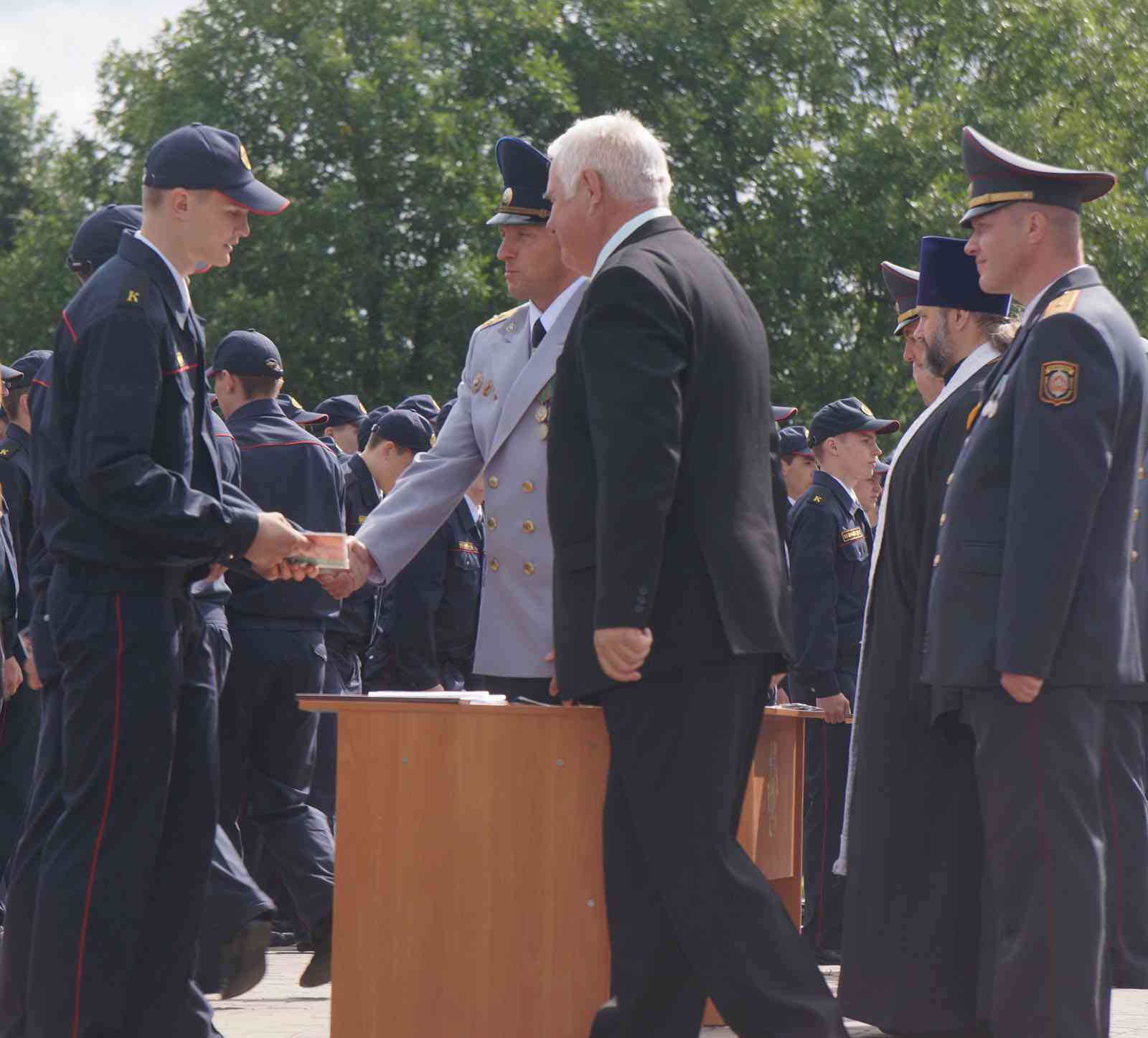 От имени руководства Министерства внутренних дел будущих поздравил начальник главного управления идеологической работы полковник милиции Эдуард Ярошук.