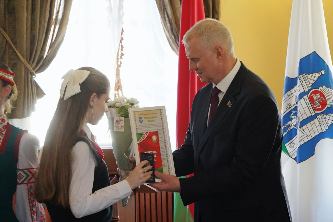 В преддверии Дня Конституции паспорта гражданина Республики Беларусь им вручили мэр Могилева Сергей Чертков, председатель городского Совета Светлана Сташевская и первый секретарь горкома БРСМ Виктория Цыганова.