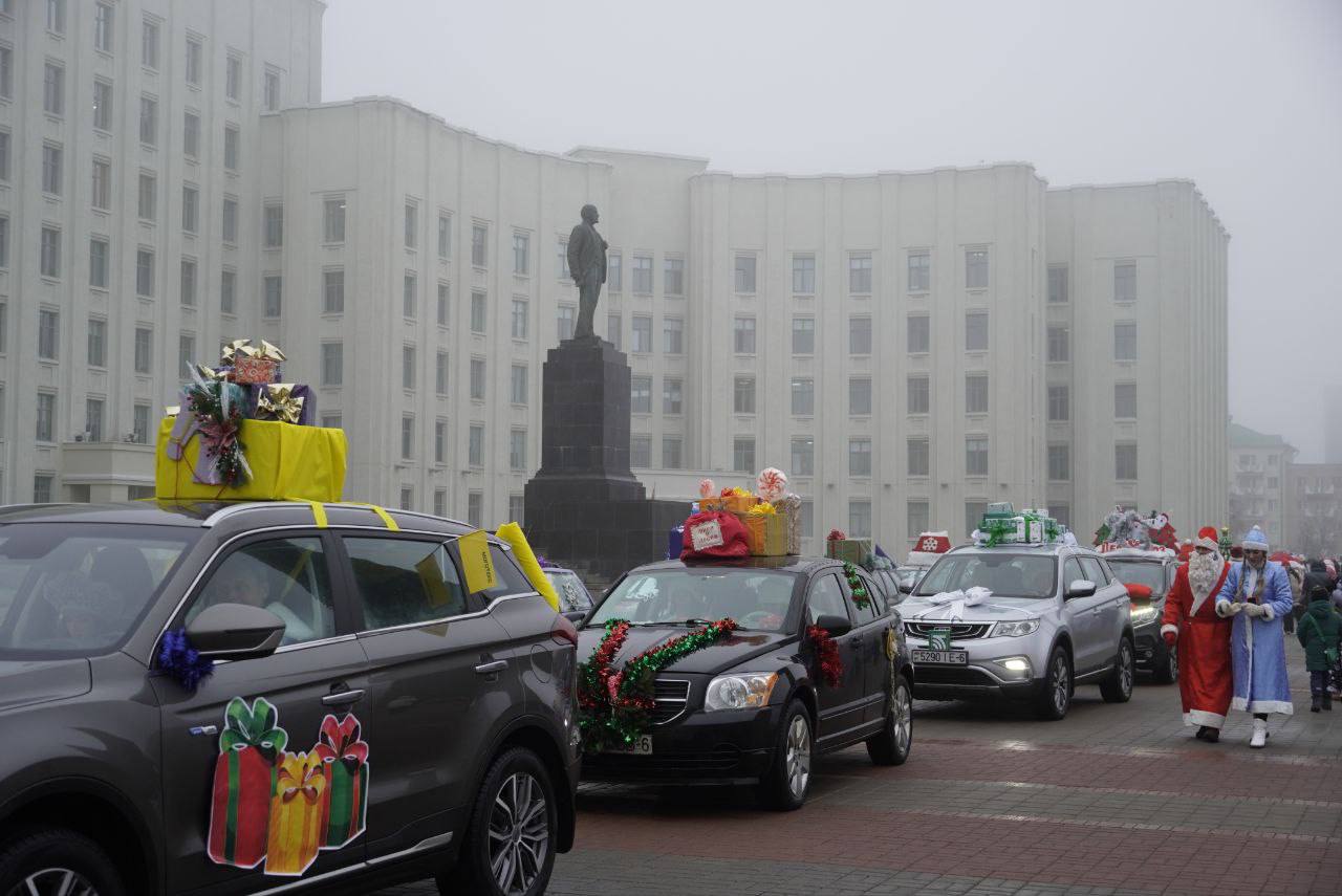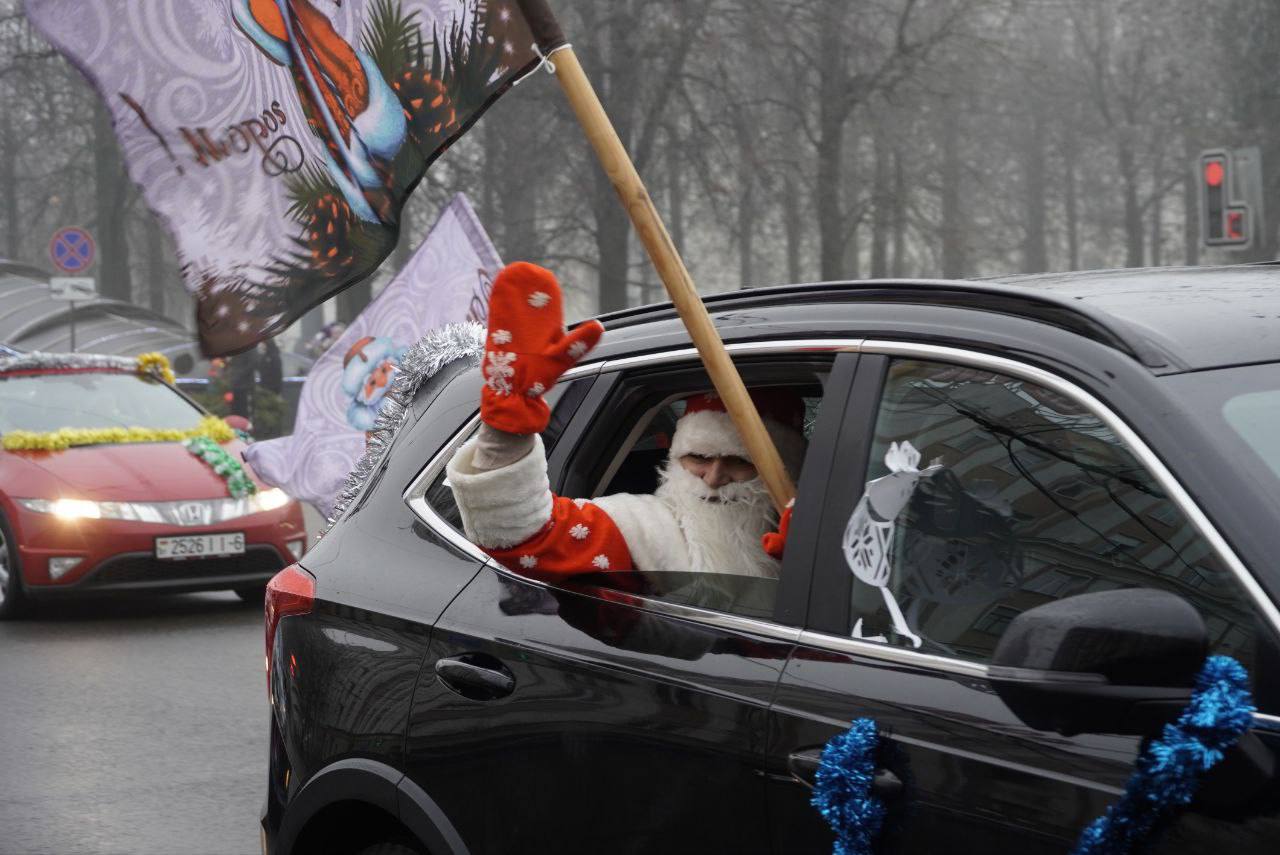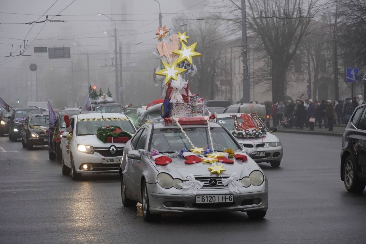Колонна празднично украшенных автомобилей во главе с Дедом Морозом проехала по улицам Могилева.
