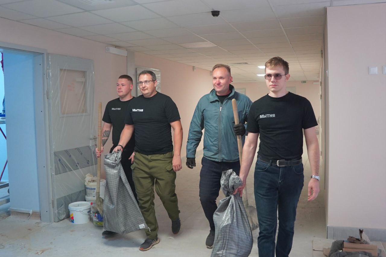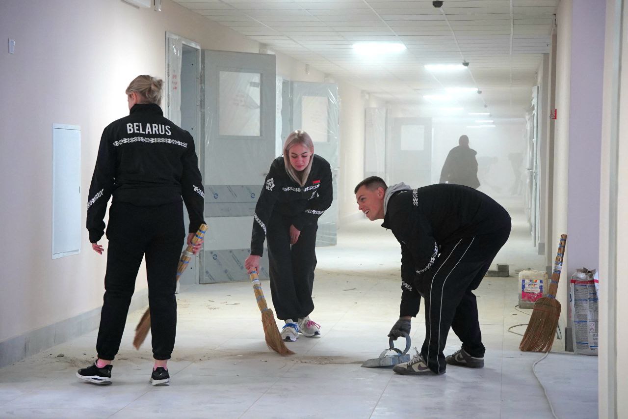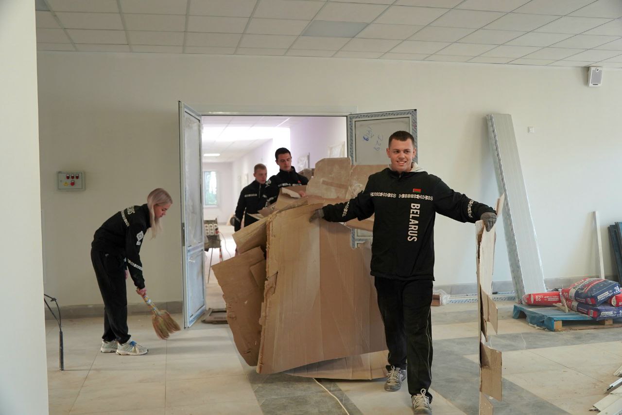 Курсанты Могилевского института МВД во главе с начальником Романом Романчуком, сотрудники Могилевской таможни и игроки футбольной команды «Днепр STARS» объединились помочь как можно скорее достроить новый корпус медицинской реабилитации.