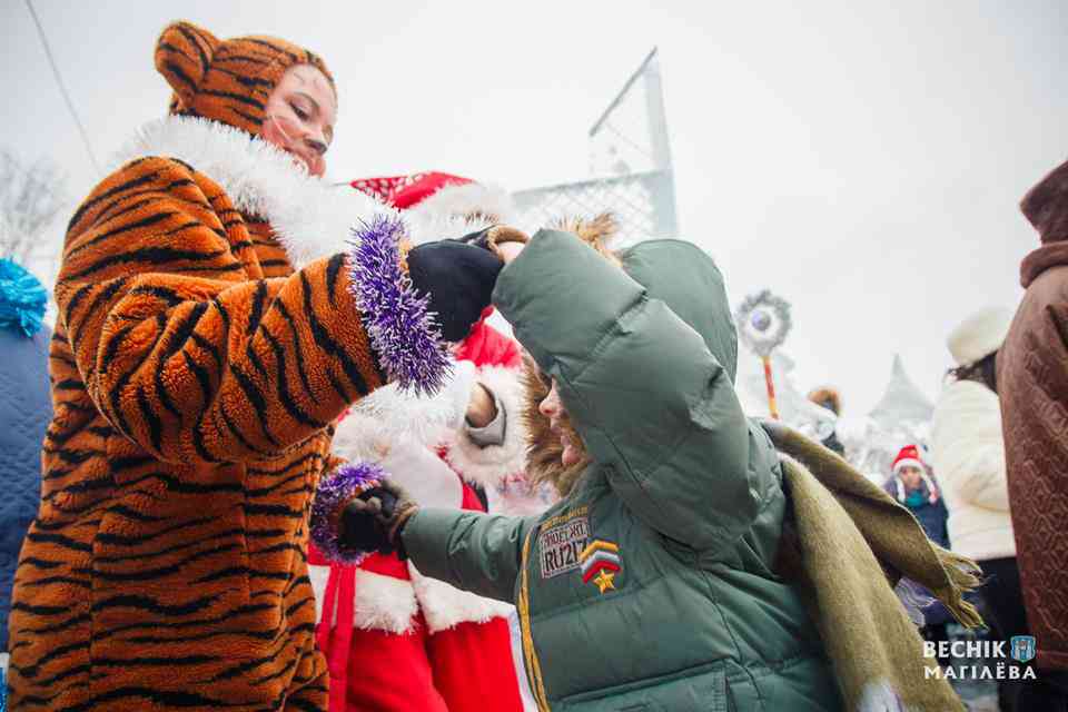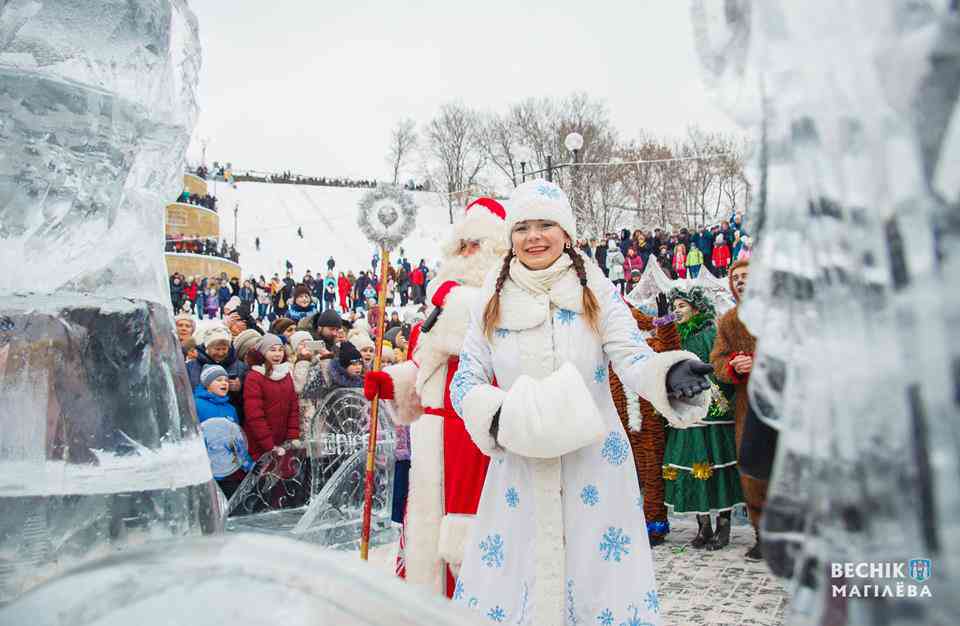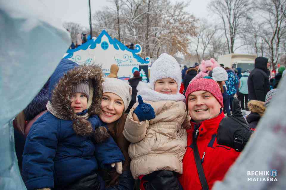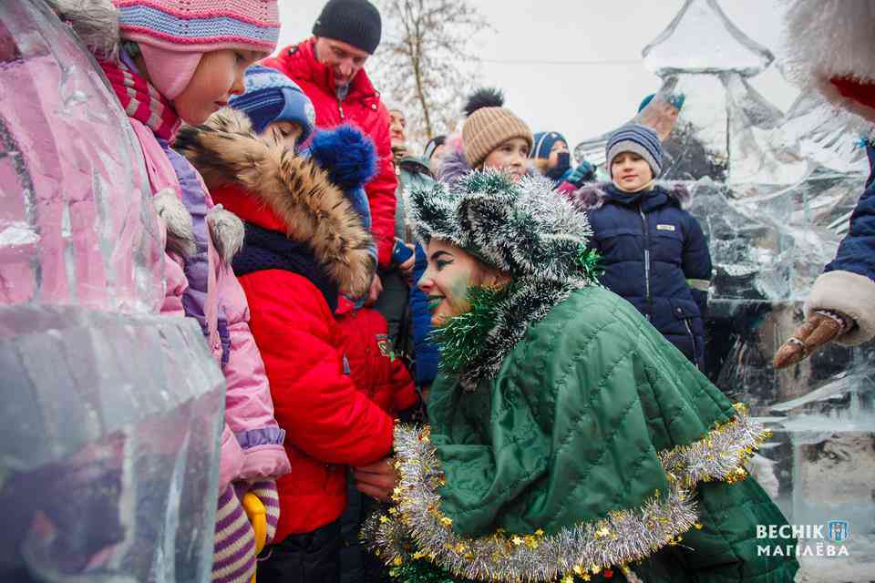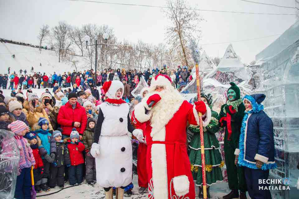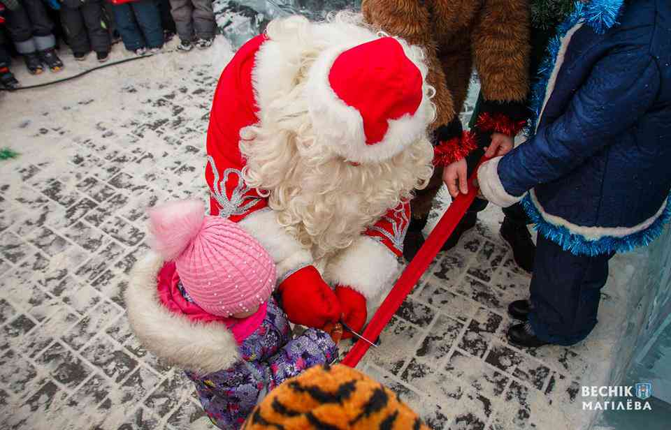 На открытие своих владений вместе со сказочными персонажами прибыли главные гости праздника – Дед Мороз со Снегурочкой. Вместе с детишками они перерезали красную ленту, поздравили ребятишек, и, конечно же, поучаствовали в фотосессии на величественном троне. Большим интересом пользовались у гостей праздника все ледяные скульптуры, в числе которых не только скульптура Деда Мороза и Снегурочки, но еще и зайчики, олени, ледяной терем, трон, сани и многое другое. До этого могилевчанам разве только доводилось слышать о подобном величественном ледяном царстве российского Деда Мороза в Великом Устюге.