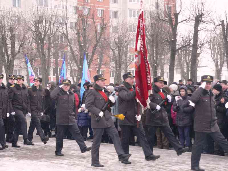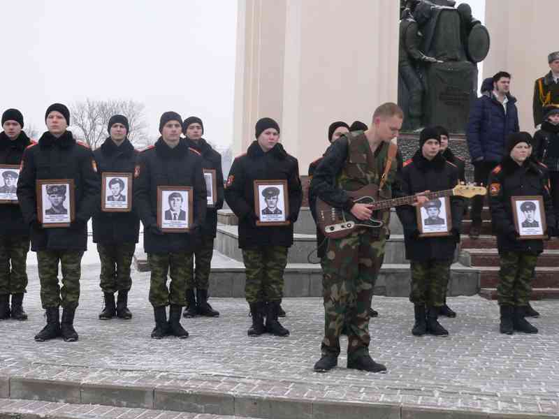 Военнослужащие, кадеты прошли колонной, отдавая почести всем участникам мероприятия. Будущие защитники Отечества с честью сохраняют преемственность поколений. Патриотическое воспитание молодежи — одно из главных направлений в работе членов Белорусского союза ветеранов войны в Афганистане, которые в преддверии памятной даты встретились в солдатами, проходящими службу в воинских частях областного центра, побывали в учебных заведениях города, чтобы рассказать подрастающему поколению о героях , чьи имена вписаны в историю нашей страны.