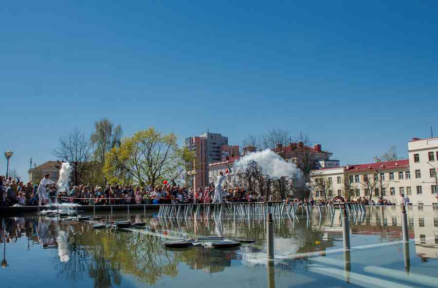 Первого мая традиционно открыли и сезон фонтанов. Из-за ремонта самого крупного, что располагается у стадиона «Спартак», гуляния перенесли на площадку у «китайской стены» по ул. Первомайской. Кроме этого, выступали творческие коллективы города, прошли мастер-классы по различным музыкальным направлениям и презентация фитнес-клубов Могилева.
