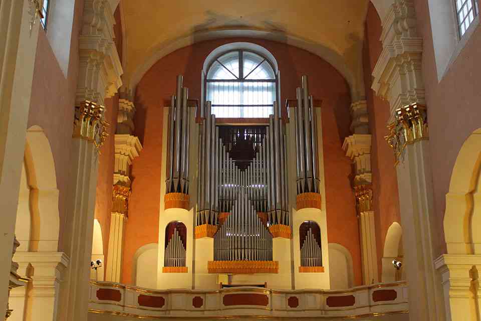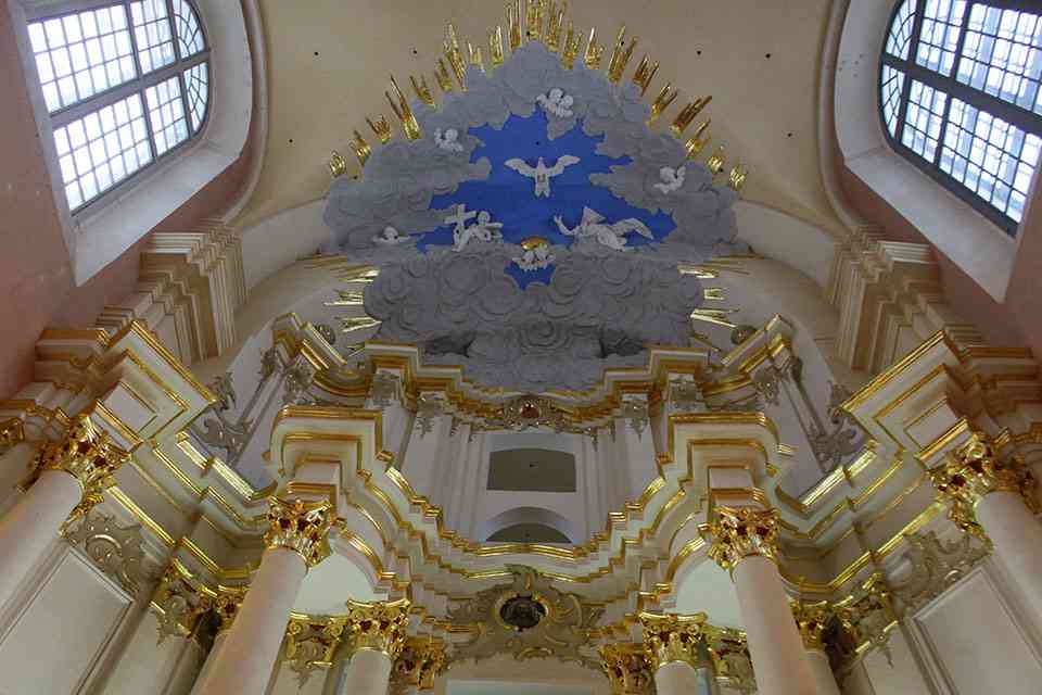 В XVIII веке Софийский собор приобрел свой современный вид. Именно в те времена по замыслу Яна Глаубица возникла одноапсидная базилика с фасадом, обращенным к водам Двины. Внутреннее убранство святыни было поистине впечатляющим: изысканная лепнина, карнизы, колонны, выдержанные в архитектурном стиле барокко.