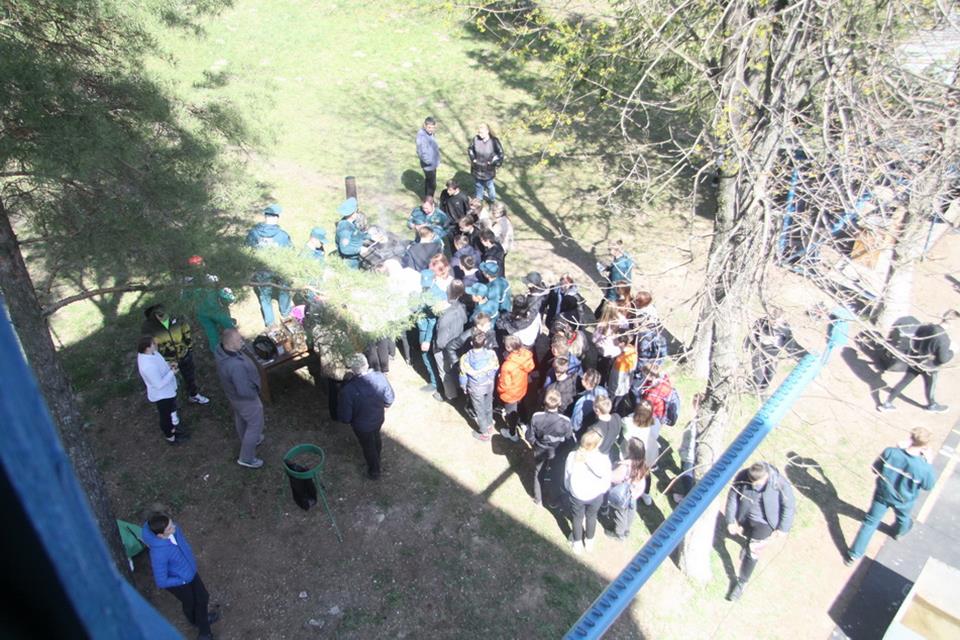 Пока жюри подводило итоги слета, школьники ознакомились с аварийно-спасательным оборудованием и техникой, состоящими на вооружении в МГОЧС. Так же взрослые коллеги продемонстрировали ребятам на учебной башне спасение пострадавшего с высоты. Ждал участников еще один сюрприз от МЧС, теперь уже вкусный – каша спасателя.