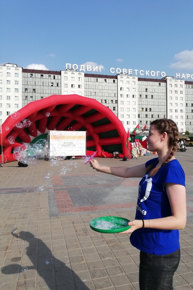 Во второй день молодежного фестиваля, 17 июля, Могилевская область представила тематическую площадку «Беларусь добрая», подготовленную волонтерским движением ОО «БРСМ» «Доброе Сердце». Здесь для гостей и участников были организованы фотозона, мастер-классы по изготовлению васильков из гофрированной бумаги, по плетению кос, боди-арт, твистинг (скручивание фигур из воздушных шаров), мыльные пузыри, акция «Ладошка добра».