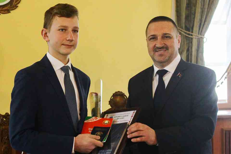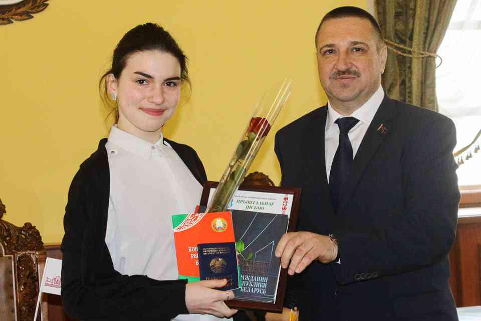 Для могилевской молодежи этот праздник получился двойным — ребятам вручили паспорта. Не каждому выпадает шанс получить свой первый взрослый документ в торжественной обстановке. Для этого нужно быть отличниками, успешными молодыми спортсменами и активистами. Свой главный документ они получили в городской ратуше из рук заместителя председателя Могилевского горисполкома Аллы Галушко и председателя городского Совета депутатов Сергея Иванова.