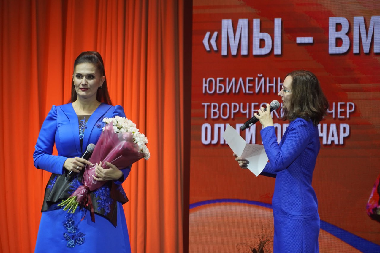 На сцене перед зрителями выступила обладатель медали Франциска Скорины, ведущий мастер сцены Могилевской областной филармонии, автор и исполнитель песен Ольга Горничар.