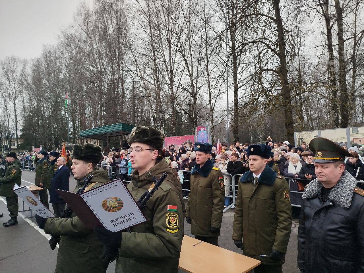 Напутсвенные слова с трибуны сказали начальник штаба инженерных войск Вооруженных Сил полковник Павел Михайлов и заместитель военкома Могилевской области полковник Максим Косенков, отец Сергий.