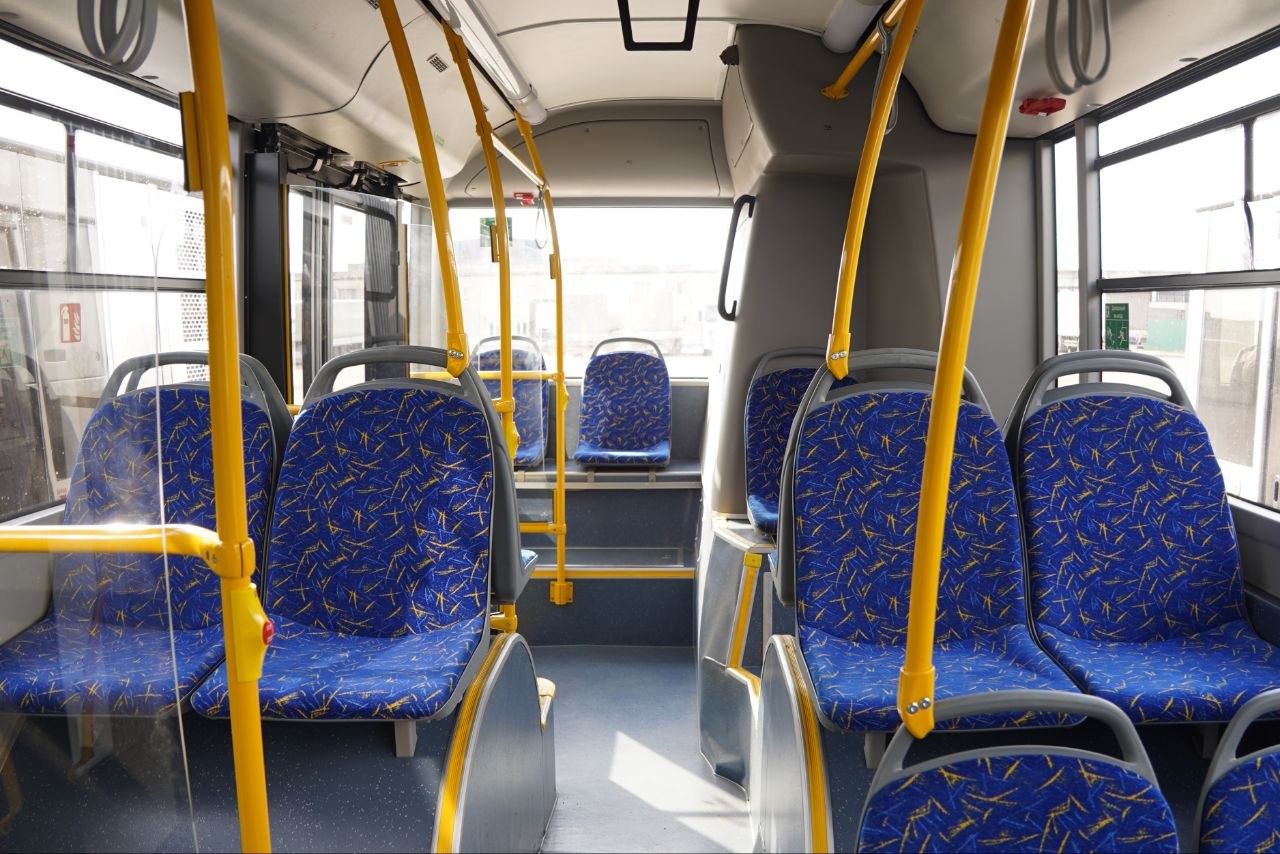 Низкий пол. Высота ступеньки — всего 34 см. Сделано с заботой о маломобильных пассажирах, пожилых людях и родителях с колясками.