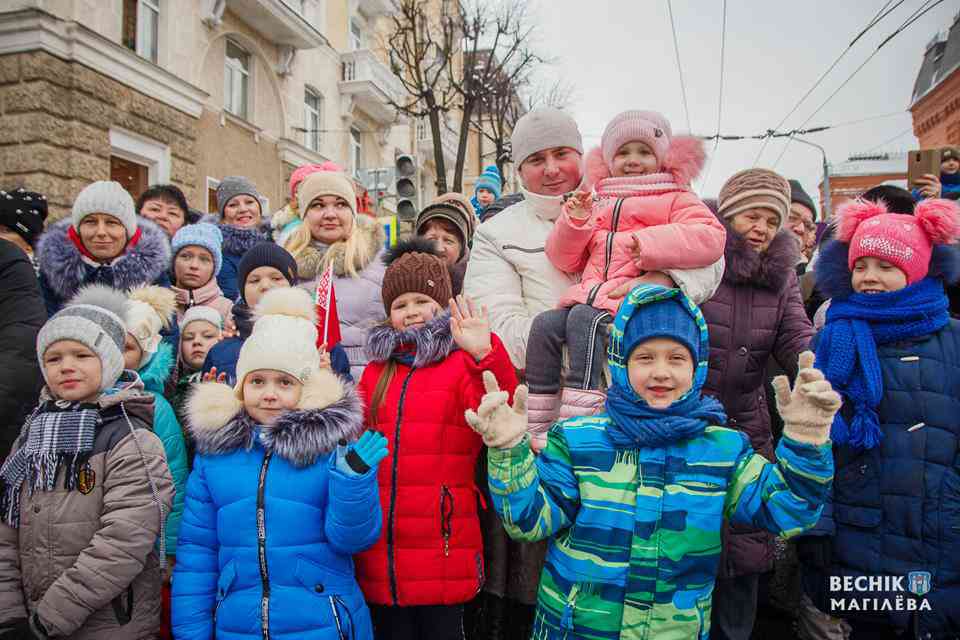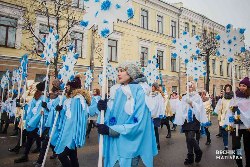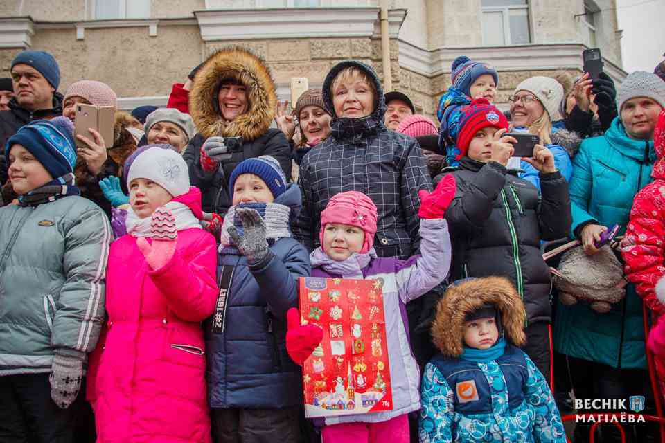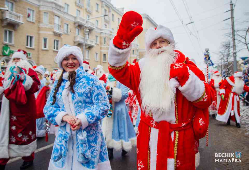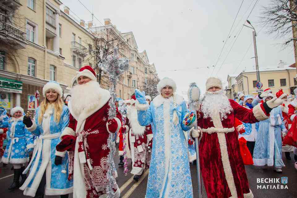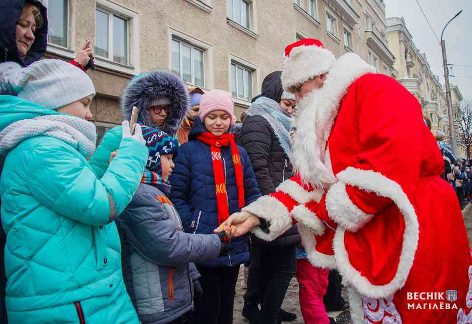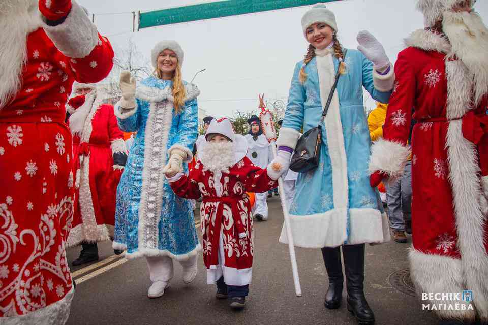 Деды Морозы «давали пять» зрителям, которые расположились вдоль центральной улицы, а маленьких могилевчан угощали конфетами. В шествии можно было увидеть и Санта-Клаусов и героев детских сказок. Они двигались под новогодние композиции в исполнении духовых оркестров города.