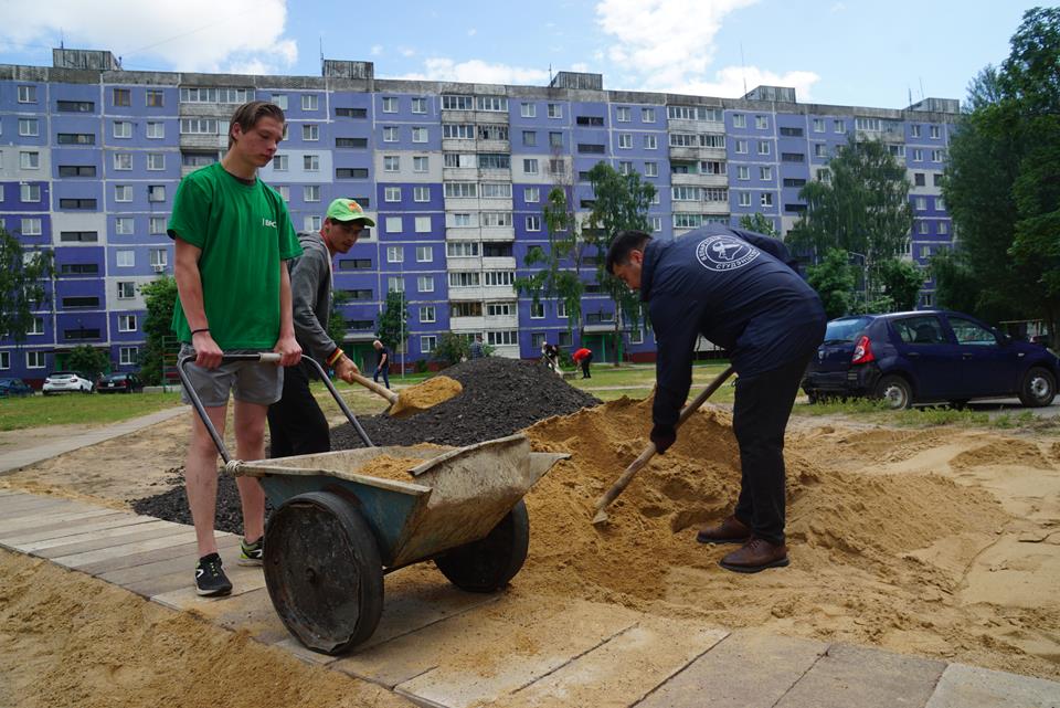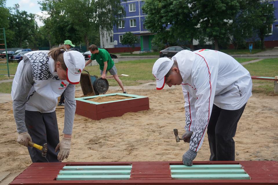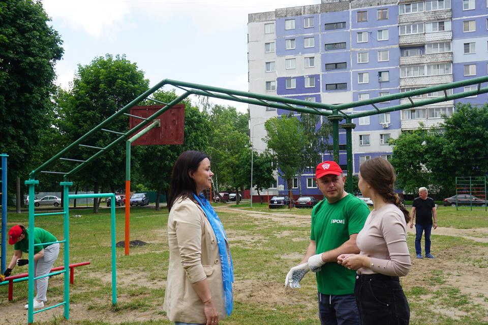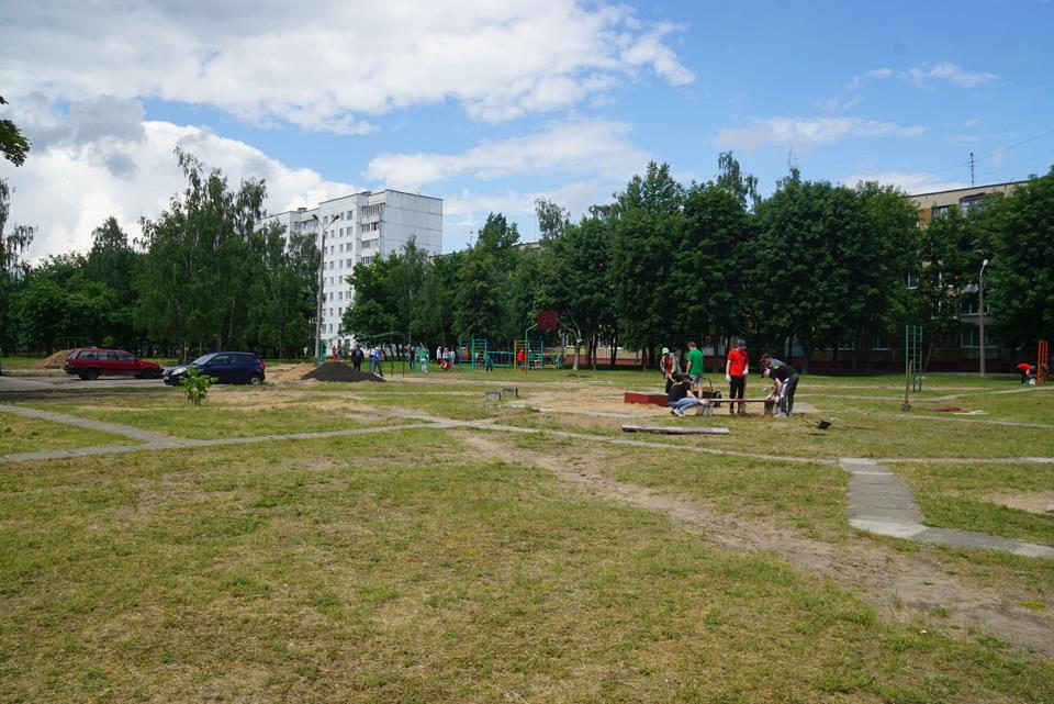 Рабочий процесс в разгаре: общественники, коммунальники, жители микрозоны обновляют спортивные сооружения, меняют и красят скамейки. К слову, работники КУП ЖРЭУ района оборудовали пешеходные дорожки таким образом, как выбирали для своего удобства сами местные жители.