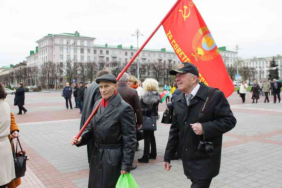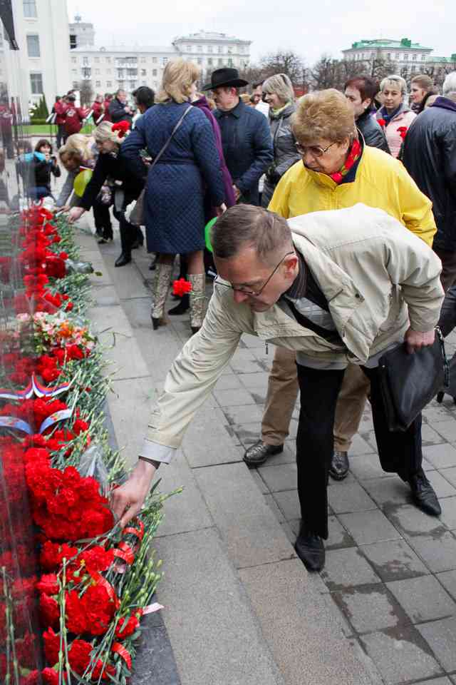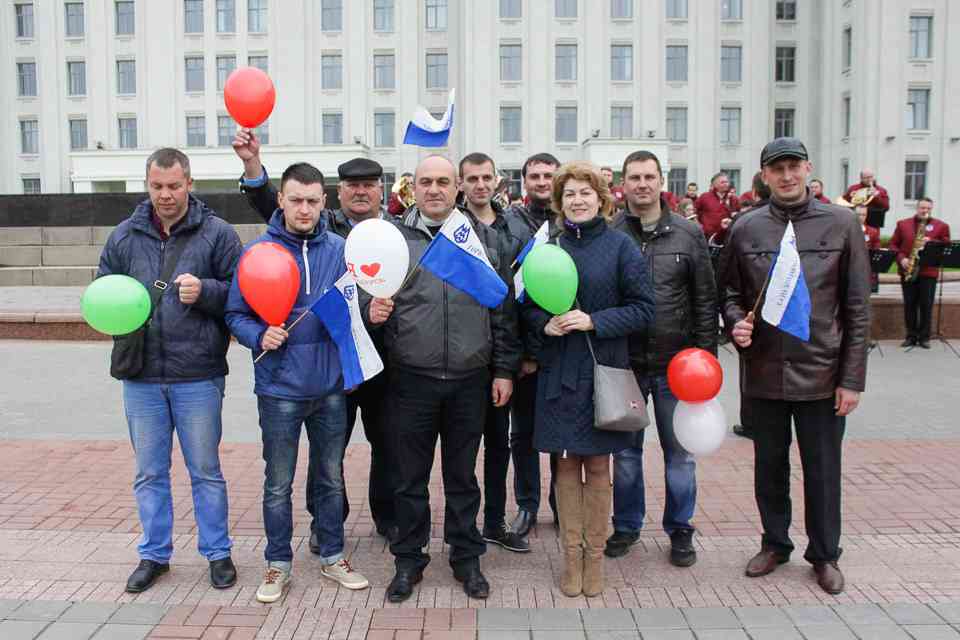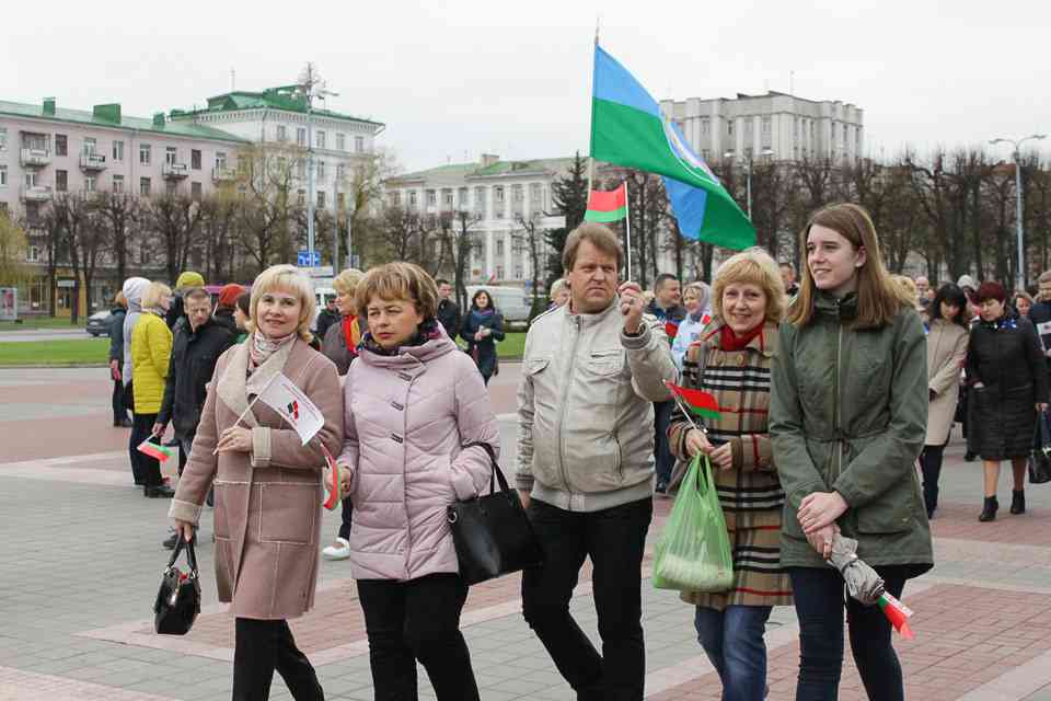 1 Мая – праздник труда и весны. Для профсоюзов это и начало трудового года, и подведение итогов. Те же, кто навсегда остался верен идеалам коммунизма или непременно должен чувствовать локоть товарища, возложили красные гвоздики к памятнику Ленина, чтобы отдать дань памяти вождю пролетариата. Растяжки и транспаранты – палитра весны и настроений. Большинство речевок, которые в сегодняшнем Могилеве несутся не с трибун, а их колонн – с предлогом «за»: новые свершения, добрые дела, солидарность. На главной площади собралось и руководство региона, члены молодежных и общественных организаций и, конечно же, главные действующие лица – представители трудовых коллективов.