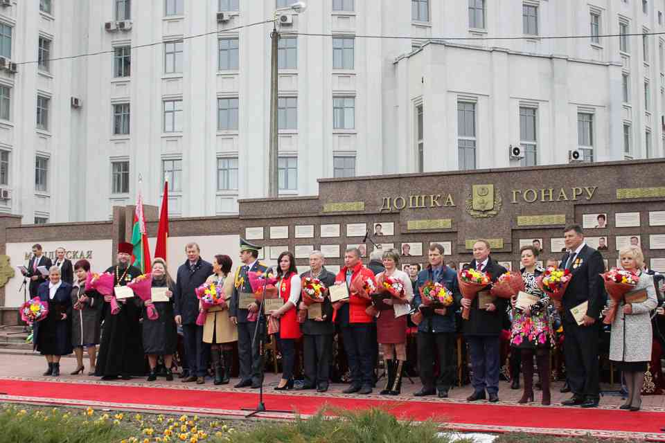 В праздничный день на областной Доске почета появились новые имена, предприятия и организации. Этой чести удостоены 24 предприятия, организации, учреждения, достигшие по итогам работы в 2016 году высоких результатов, 15 лауреатов специальной премии облисполкома «Человек года» и пять победителей национального конкурса «Предприниматель года».