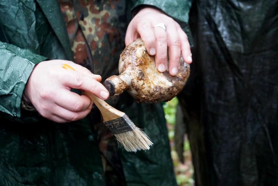 — Здесь проходили бои в конце обороны Могилева, предположительно после 20 июля 1941 года, — рассказал историк и руководитель историко-патриотического клуба «ВИККРУ» Николай Борисенко. — Пока трудно сказать, кто здесь занимал оборону, поскольку не полностью подняты останки бойца, предположительно, красноармейца. На это указывает найденная советская фляга периода еще Первой мировой войны. На ней хорошо читается клеймо «1914 год» и завод-производитель. Найдены патроны и гильзы от винтовки Мосина, а также фрагменты личного снаряжения бойца.
