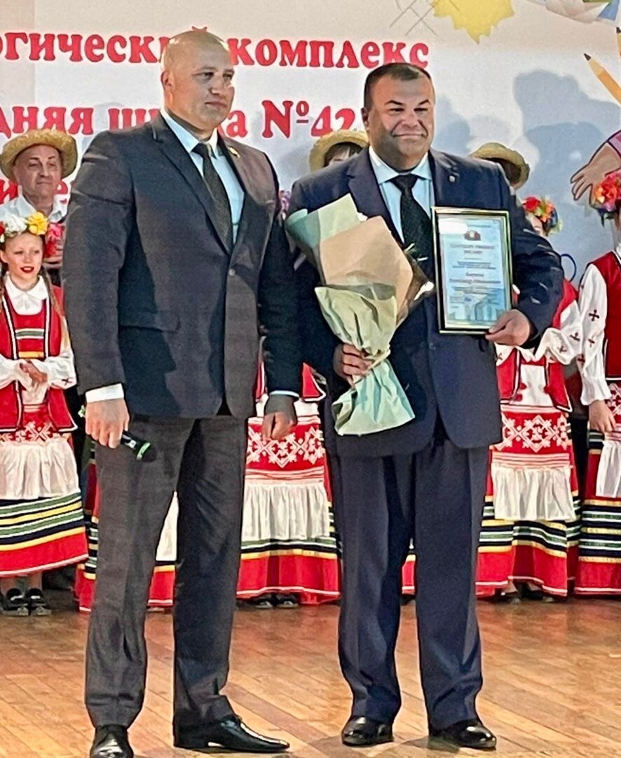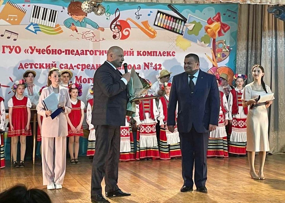 Максим Николаевич за многолетний добросовестный труд и большой вклад в дело обучения и воспитания подрастающего поколения вручил благодарственное письмо директору учреждения образования Александру Николаевичу Аверкову.