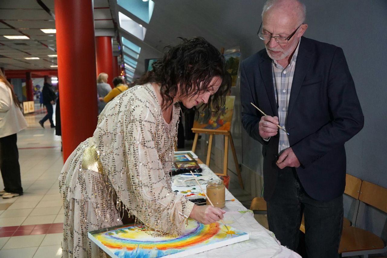 До концерта — в творчество! Пока зрители фотографировались и занимали места в зале, знаменитости давали интервью и творили, создавая уникальные картины для галереи фестиваля.