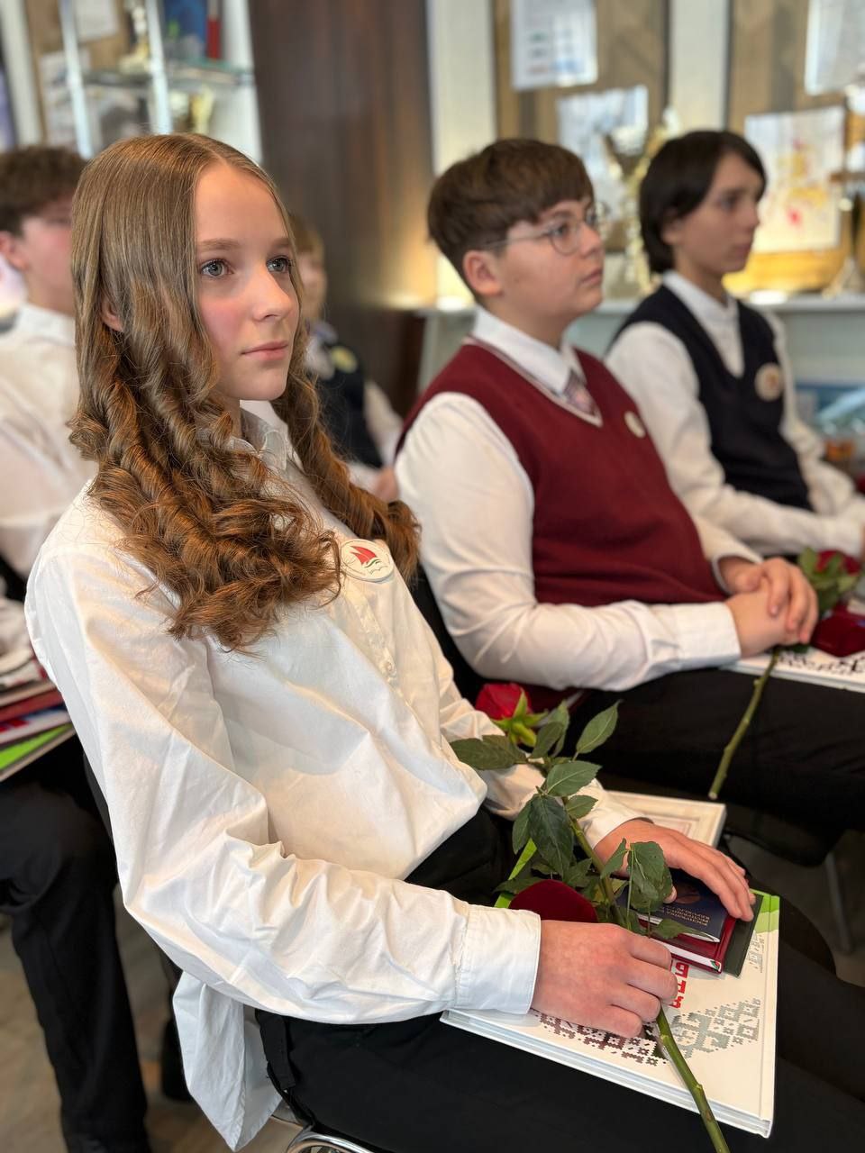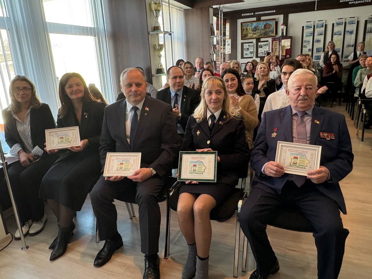 А Арсений Потапенко (СШ №39) и Анастасия Шаромет (СШ №37) получили свидетельства о присуждении специальной премии Президента Республики Беларусь по социальной поддержке одаренных учащихся.