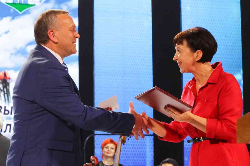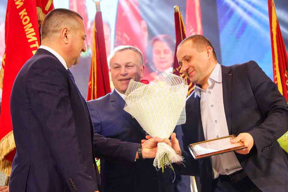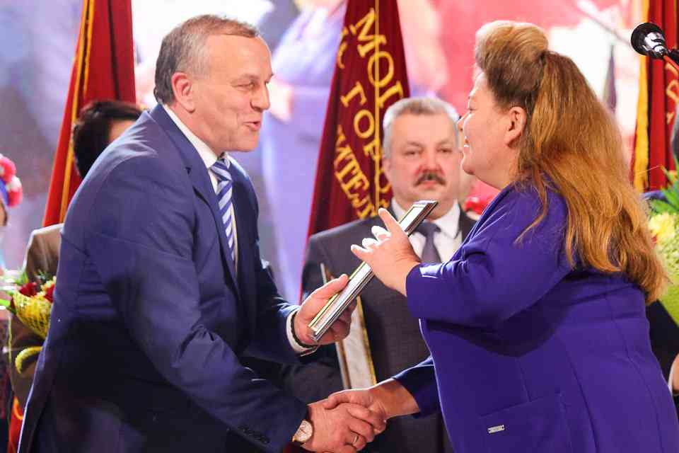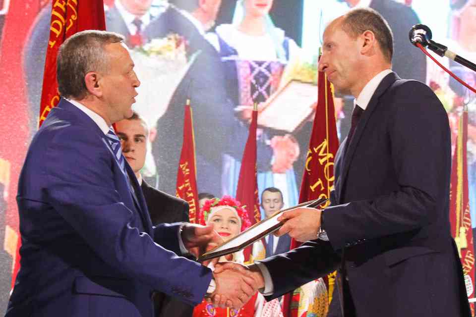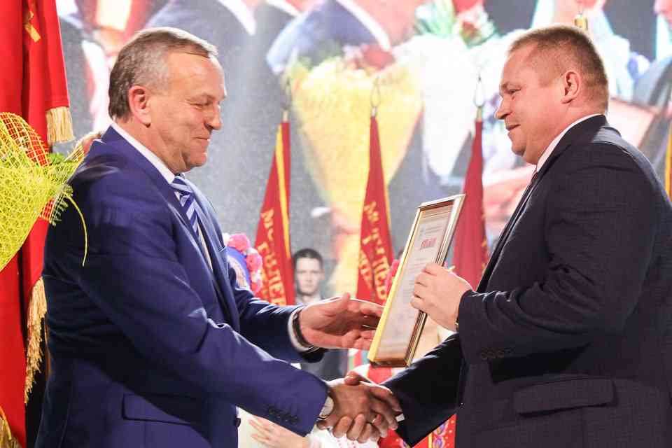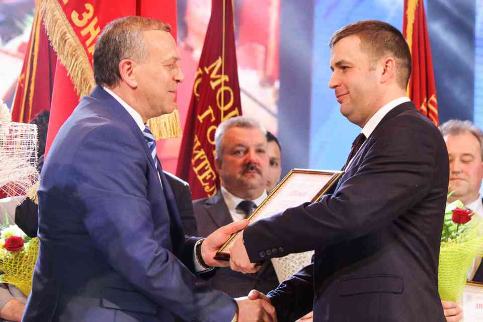 На сцену за заслуженными наградами поднимались руководители трудовых коллективов и работники, внесших значительный вклад в развитие Могилева. Каждый – пример для подражания в своей отрасли. Продукцию их предприятий можно было увидеть на развернувшейся в фойе выставке.