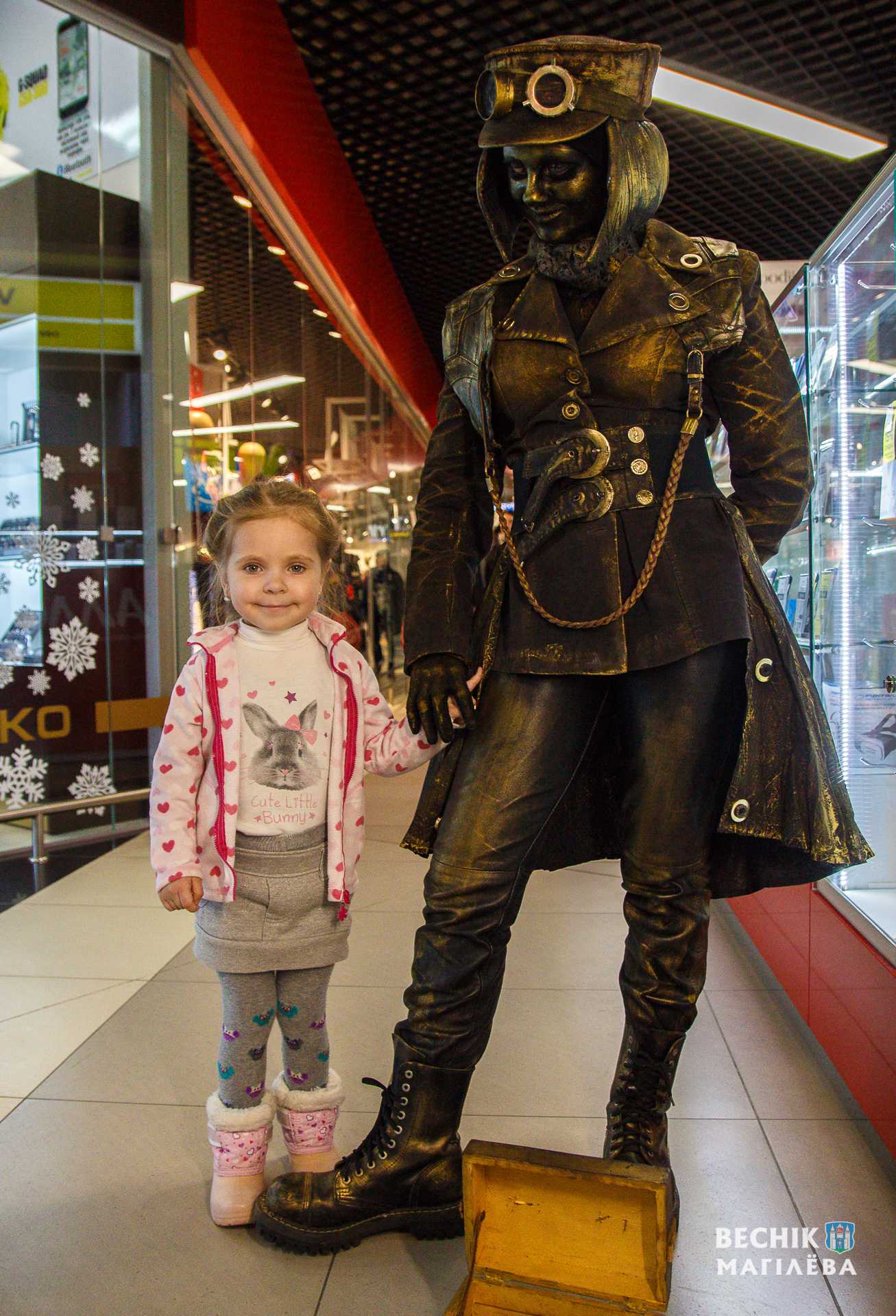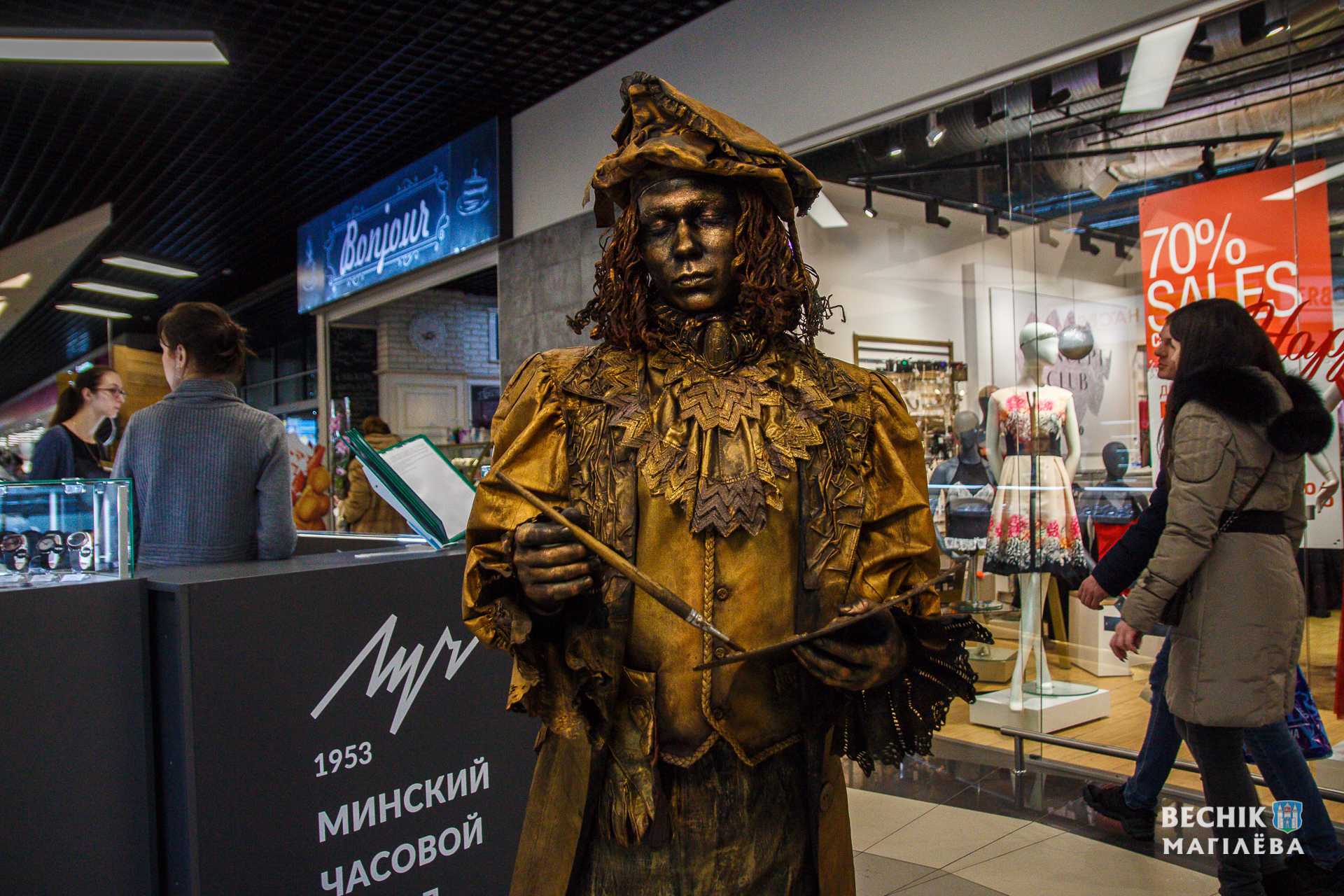 «Живые статуи», как и уличные театры, очень популярны во всем мире. Менеджер по маркетингу и рекламе Ксения Гулевич рассказала, что живые статуи можно увидеть летом на центральных улицах городов, но зимой, да еще и в торговом центре – такое в нашей стране впервые. «Мы решили устроить праздник для могилевчан и гостей города, чтобы они в выходной день смогли не только насладиться покупками, но и провести время с пользой, отдохнуть и выиграть призы», — добавила Ксения.