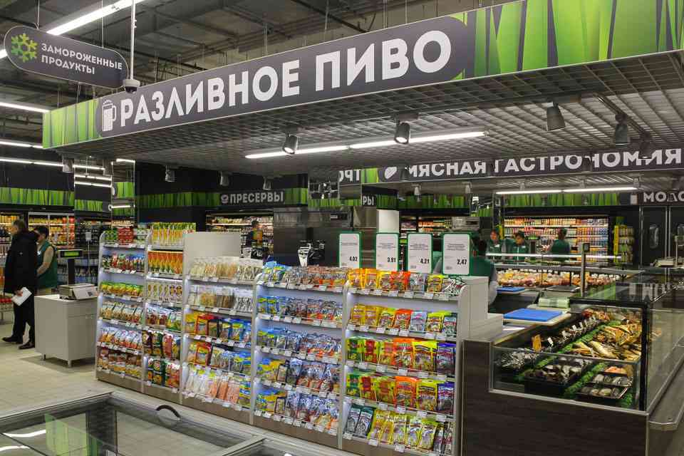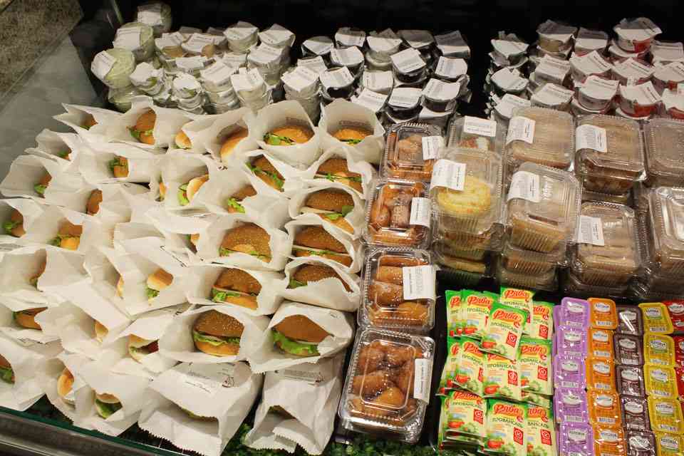 Однако и открытие гипермаркета собрало настоящий аншлаг. Несмотря на то, что двери «Green» открылись в будний день в 13.00, масса посетителей была у дверей еще в 11. Как заведено, торговый зал разделен на сектора. Справа акционная зона и непродуктовые товары. Слева – алкогольная продукция. У тыльной стороны – кулинария и хлебобулочный отдел, большую часть которого занимает продукция собственного производства. На первый взгляд, здесь действительно неплохой выбор, что порождает ажиотаж, который не спадает и по сей день.