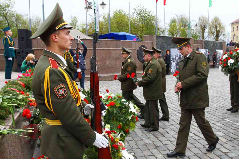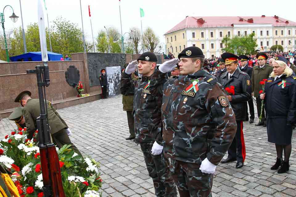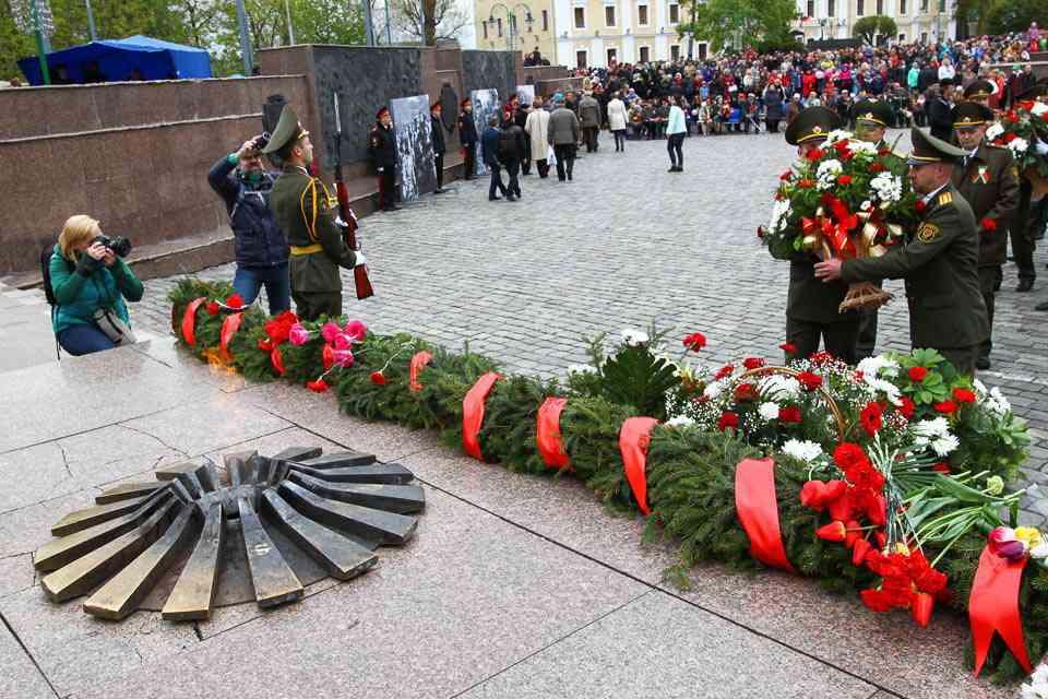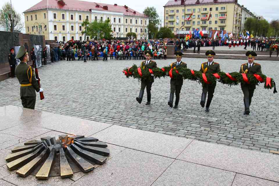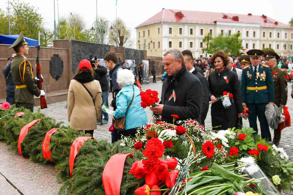Венки и цветы – к Вечному огню. Минута молчания – в память о Героях кровопролитной войны. «Более двадцати лет мы живем в спокойной и независимой стране. Мы плодотворно трудимся, растим детей, дружим с соседями. К сожалению, события, происходящие на планете, показывают, что далеко не все хотят мира и спокойствия. Тем важнее сохранить традиционные ценности нашего народа: независимость, стабильность, общественное согласие. Политика нашего государства открыта и миролюбива. Но мы готовы всегда встать на защиту наших границ, на защиту нашей родной Беларуси. Уверен, вместе мы сделаем все для того, чтобы в нашей стране больше не звучали выстрелы, не рвались бомбы, не гибли люди. Есть принципы, которыми нельзя поступаться ни при каких обстоятельствах: это свобода людей, достоинство страны и покой родного дома. Это дорого каждому и делает нас едиными и сильными», – обратился к могилевчанам Владимир Доманевский.