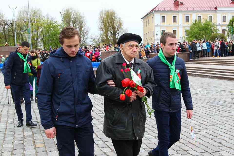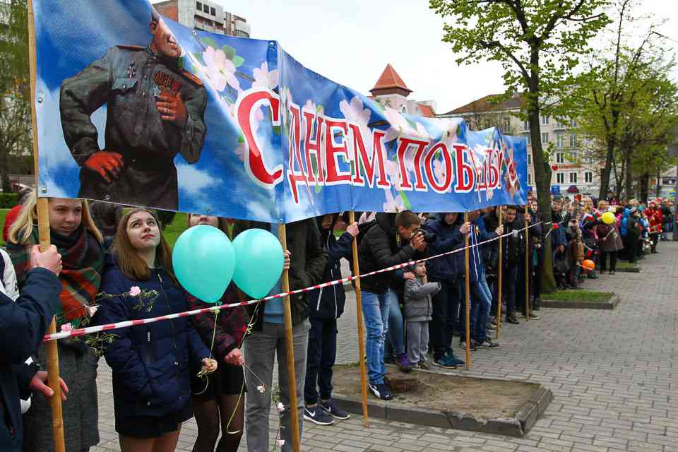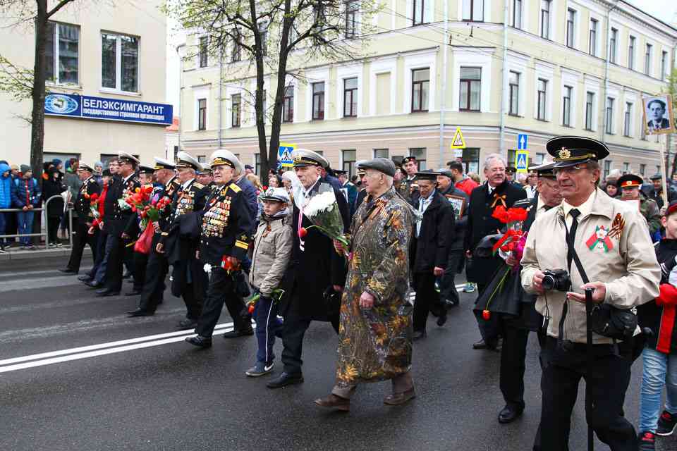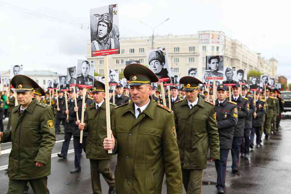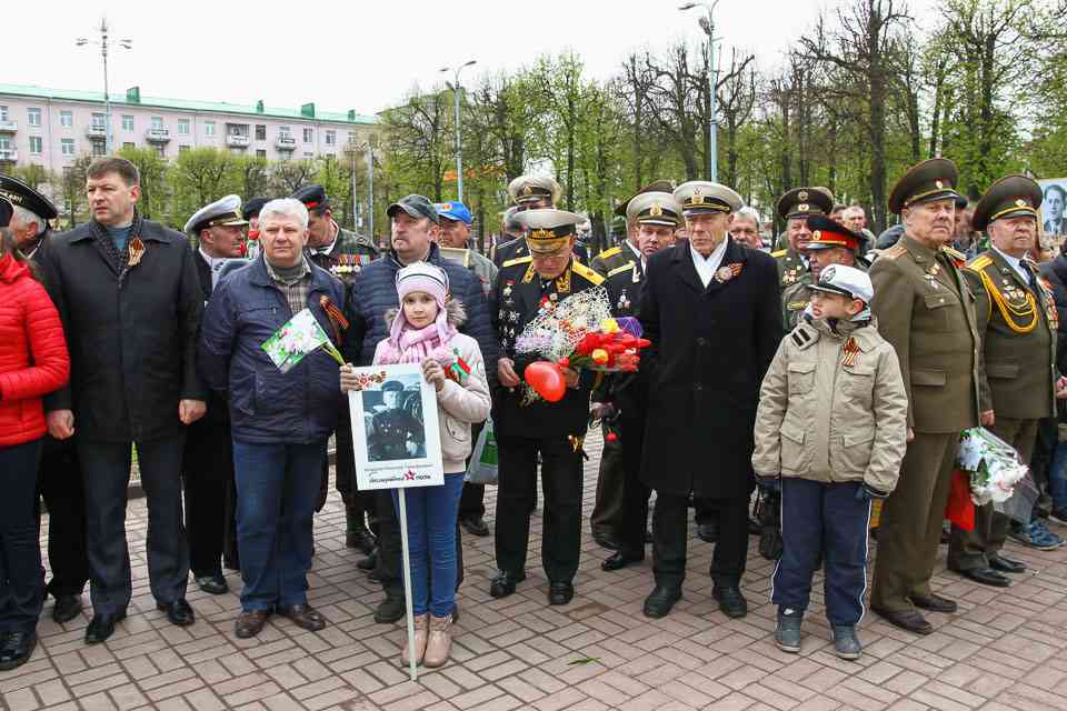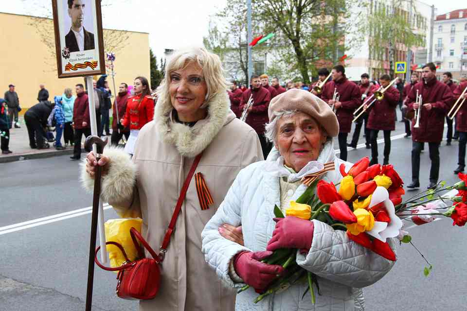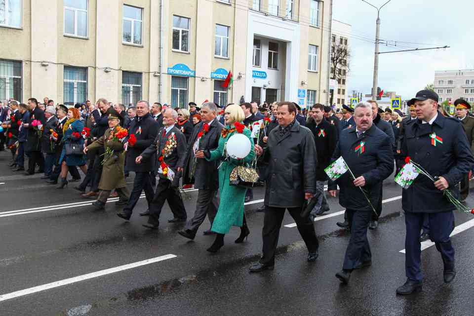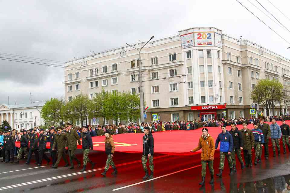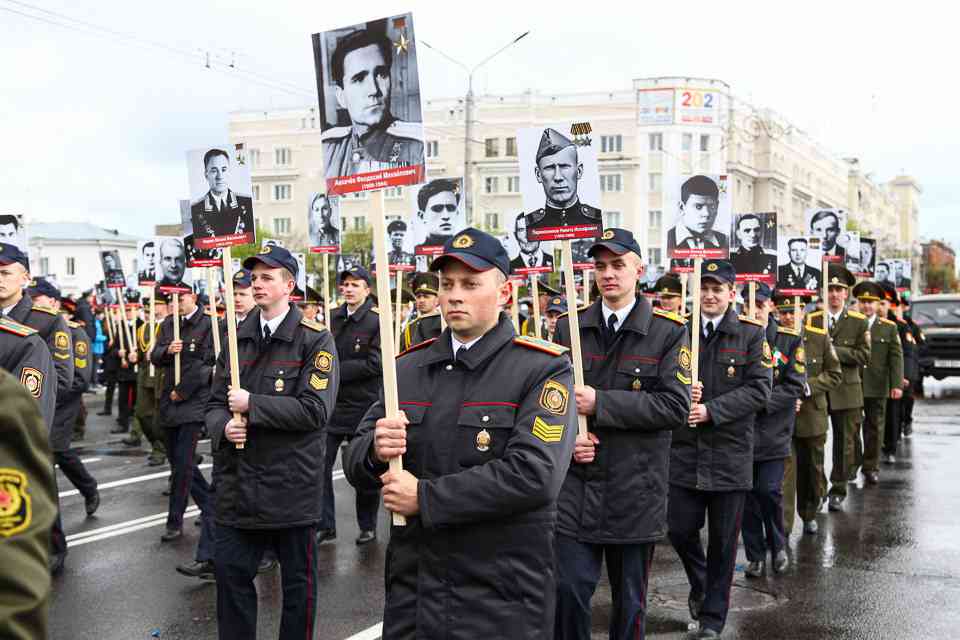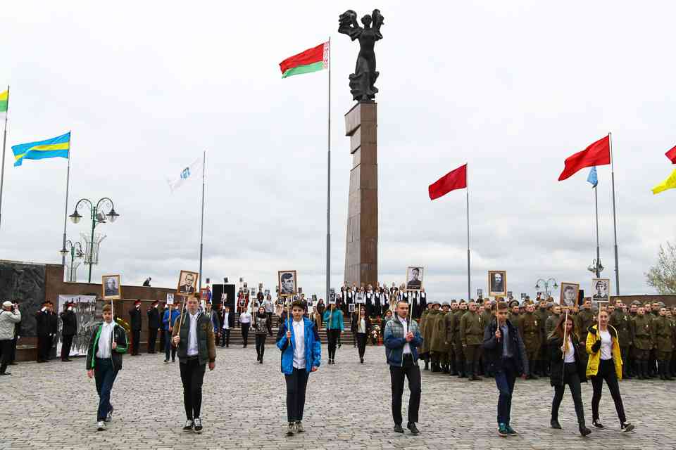 Праздничная колонна растянулась почти на всю Первомайскую, у многих в руках – фотографии ушедших ветеранов. Портреты своих прадедов и прабабушек, воевавших на фронтах Великой Отечественной, несли школьники, шедшие за ветеранами в праздничной колонне. А за ними – абсолютно разные судьбы, тысячи Подвигов и общая Великая Победа. Уже 4 поколения свято берегут историческую память, в которой воедино сплетены героизм, стойкость и мужество народа. Молодым людям есть с кого брать пример. Еще 144 портрета – Герои Советского Союза – уроженцы Могилевщины.