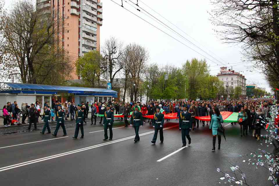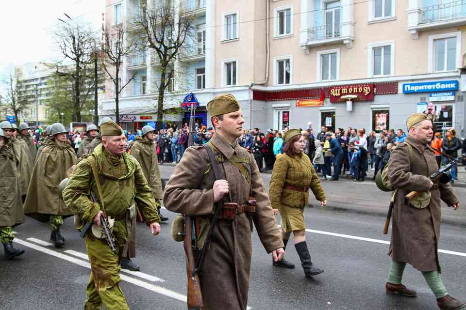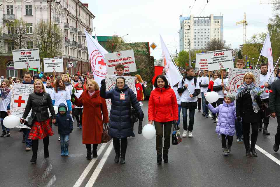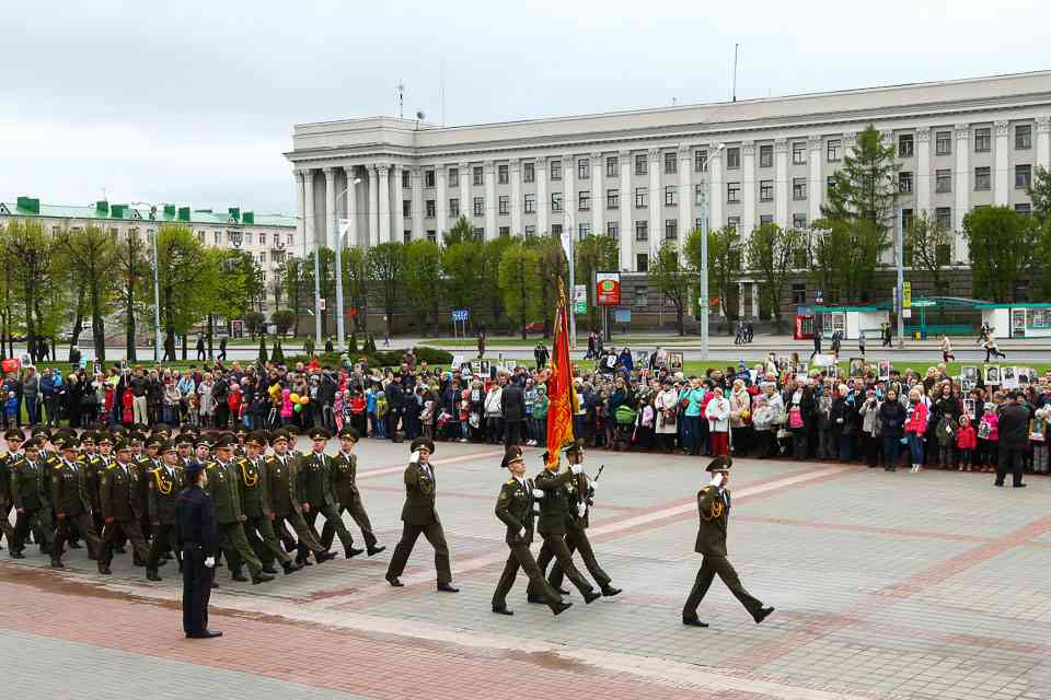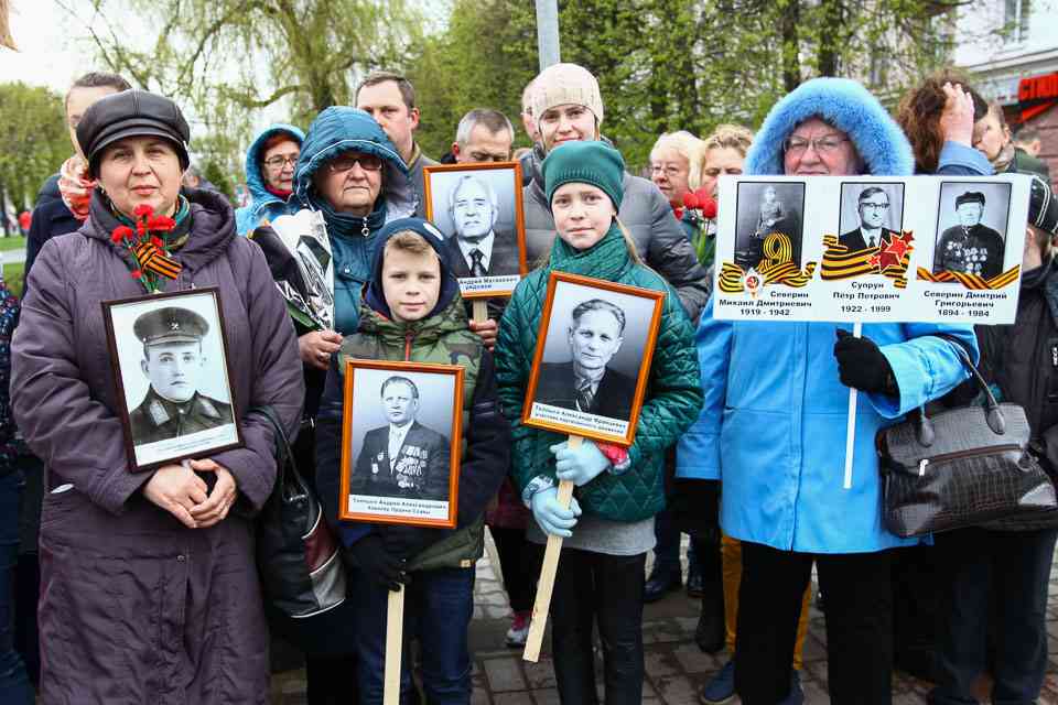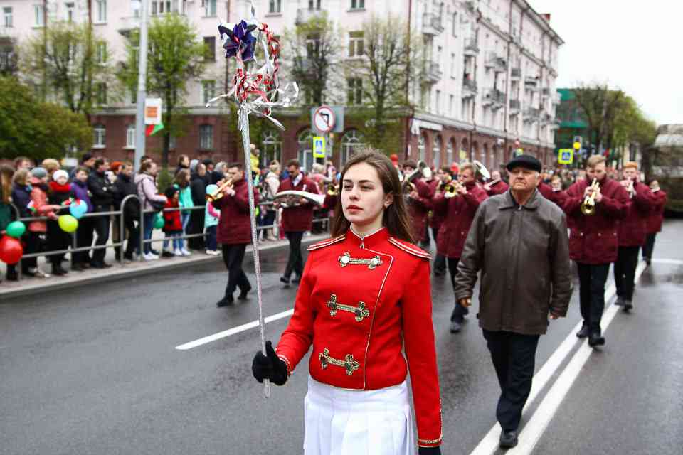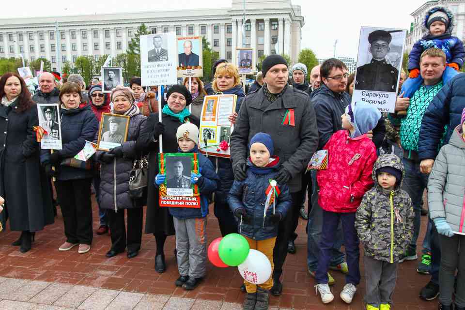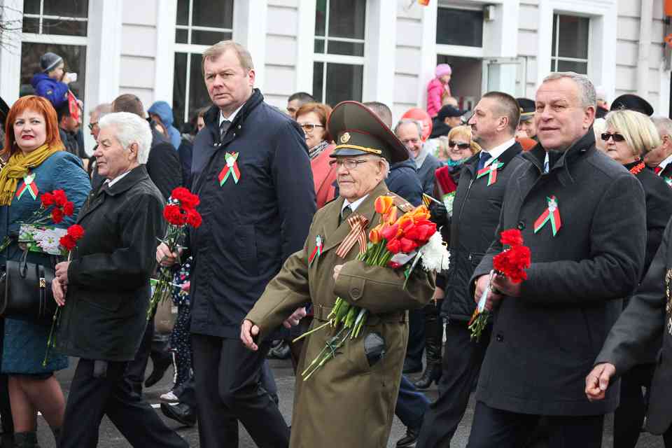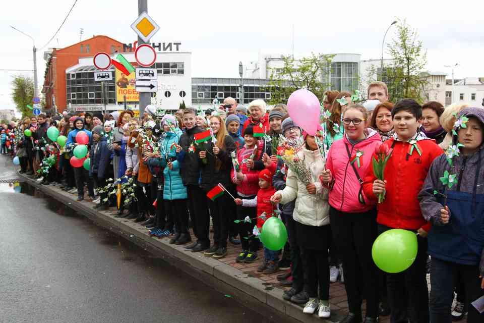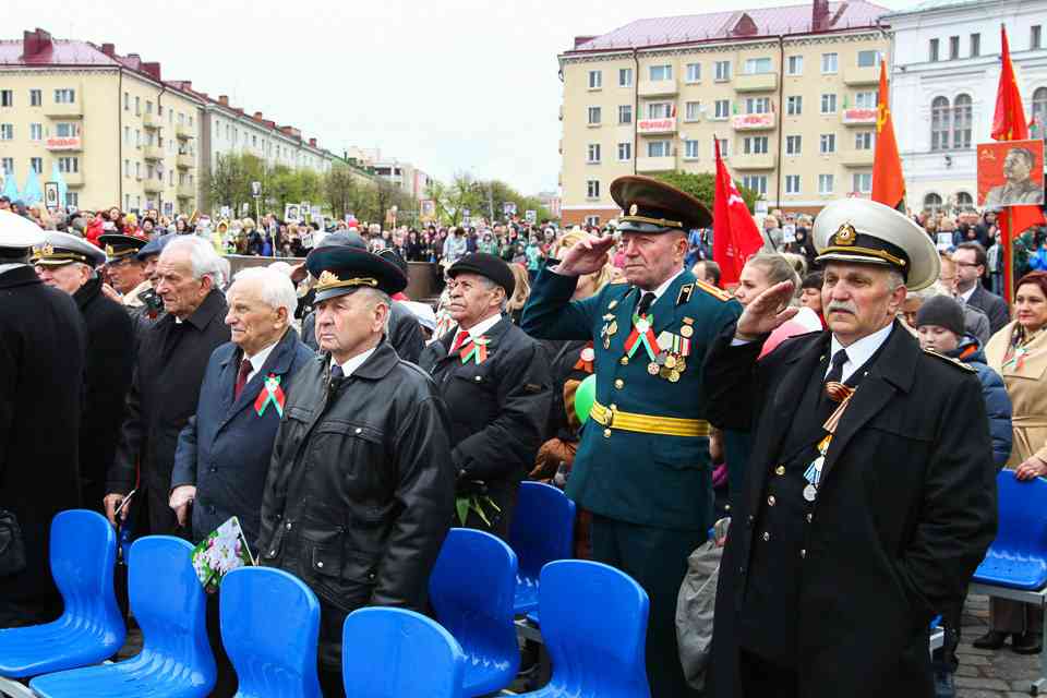 Праздничная колонна растянулась почти на всю Первомайскую, у многих в руках – фотографии ушедших ветеранов. Портреты своих прадедов и прабабушек, воевавших на фронтах Великой Отечественной, несли школьники, шедшие за ветеранами в праздничной колонне. А за ними – абсолютно разные судьбы, тысячи Подвигов и общая Великая Победа. Уже 4 поколения свято берегут историческую память, в которой воедино сплетены героизм, стойкость и мужество народа. Молодым людям есть с кого брать пример. Еще 144 портрета – Герои Советского Союза – уроженцы Могилевщины.