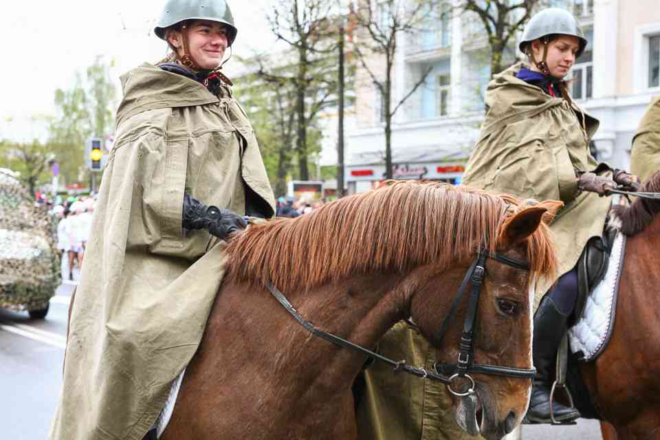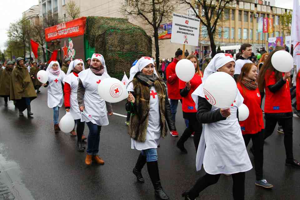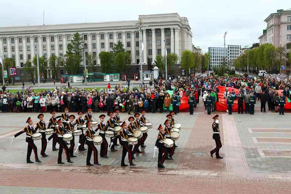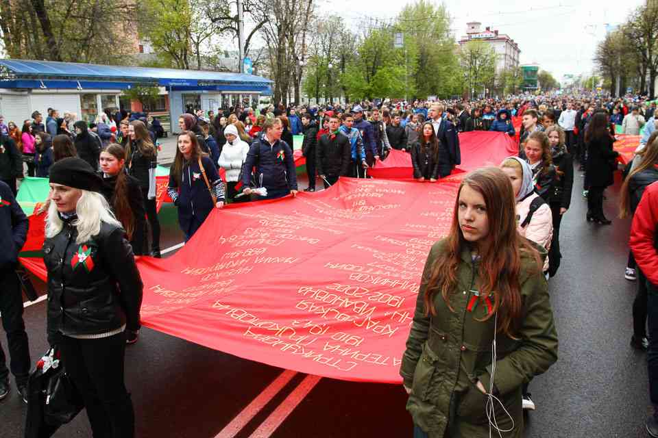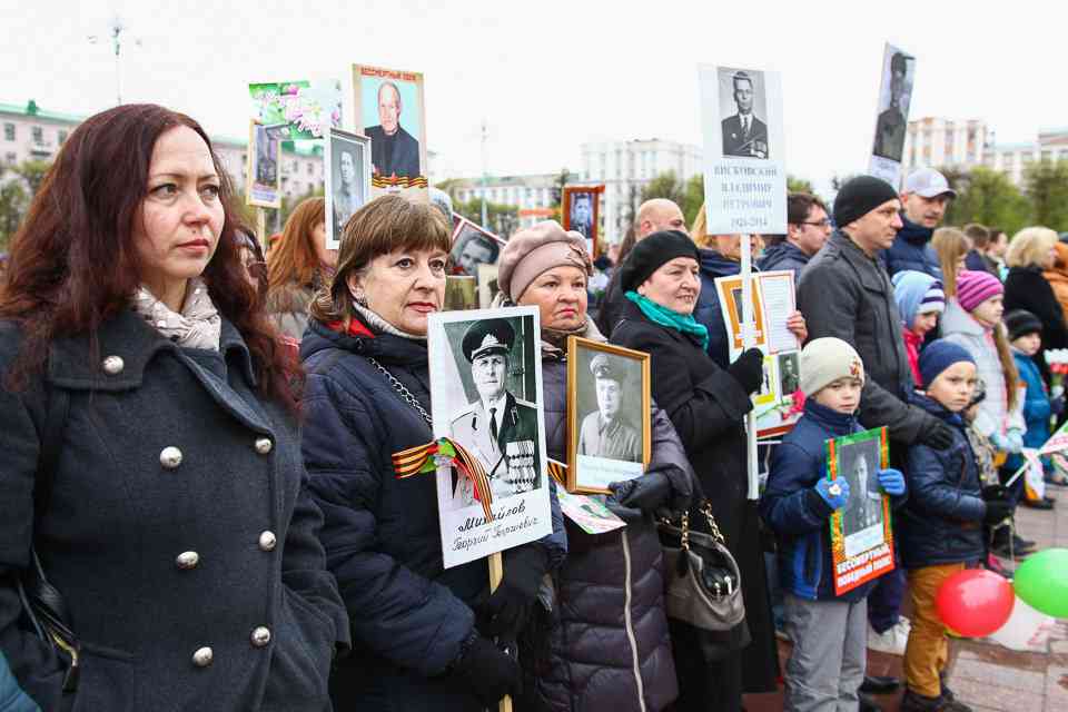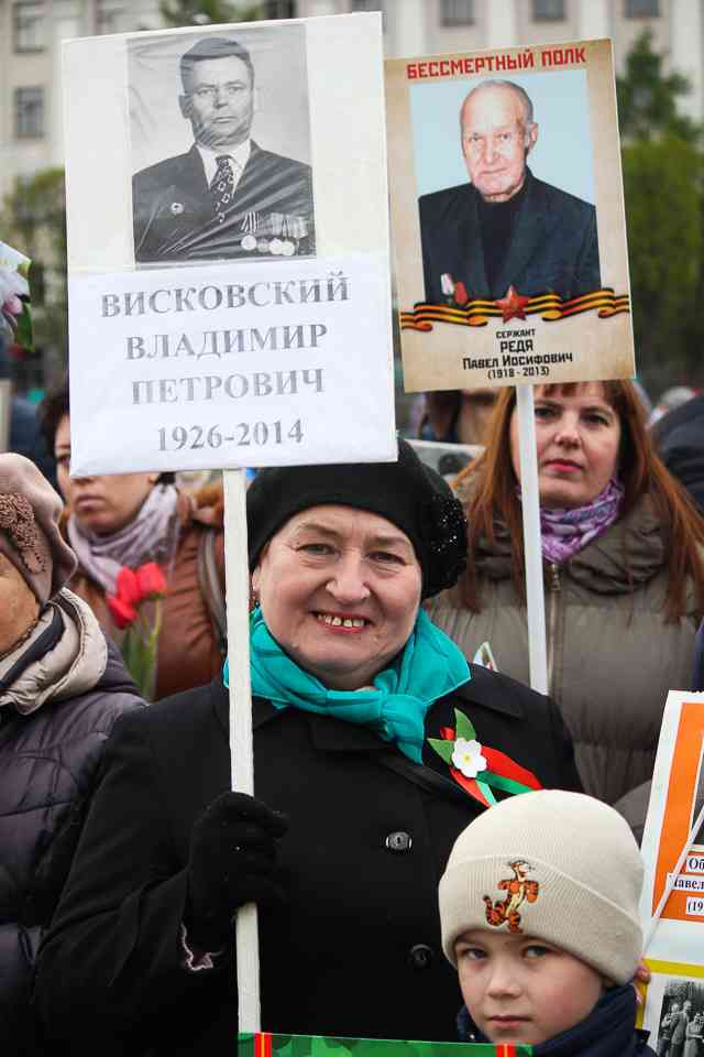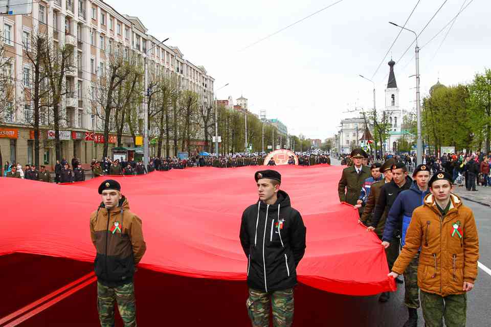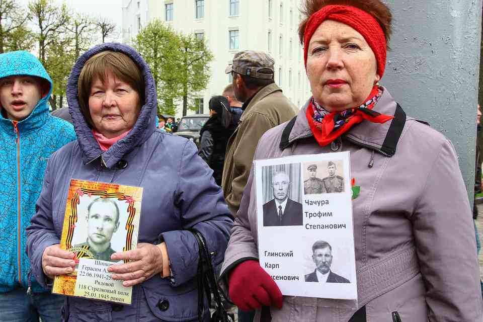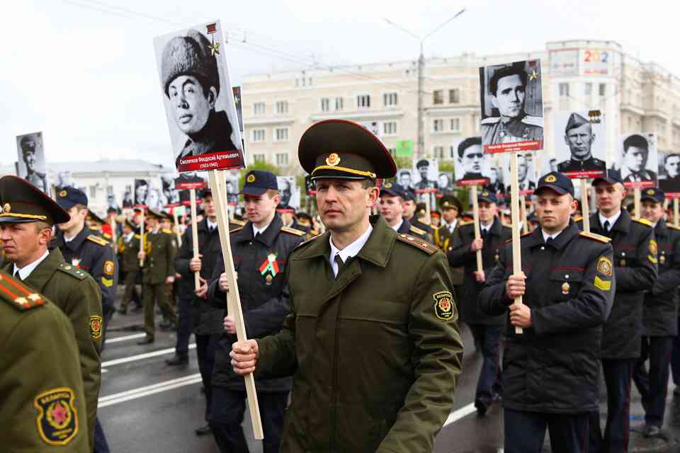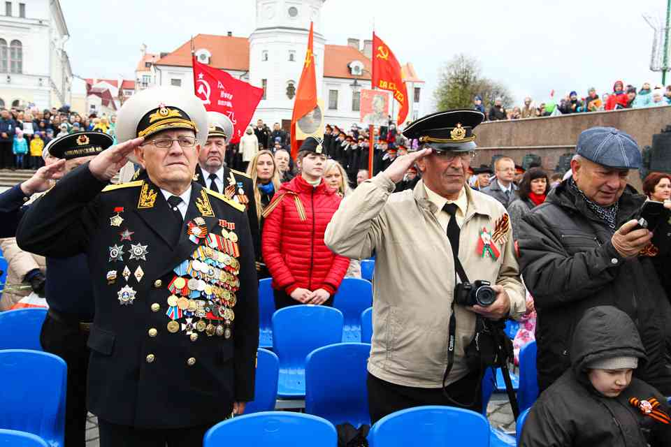 Праздничная колонна растянулась почти на всю Первомайскую, у многих в руках – фотографии ушедших ветеранов. Портреты своих прадедов и прабабушек, воевавших на фронтах Великой Отечественной, несли школьники, шедшие за ветеранами в праздничной колонне. А за ними – абсолютно разные судьбы, тысячи Подвигов и общая Великая Победа. Уже 4 поколения свято берегут историческую память, в которой воедино сплетены героизм, стойкость и мужество народа. Молодым людям есть с кого брать пример. Еще 144 портрета – Герои Советского Союза – уроженцы Могилевщины.