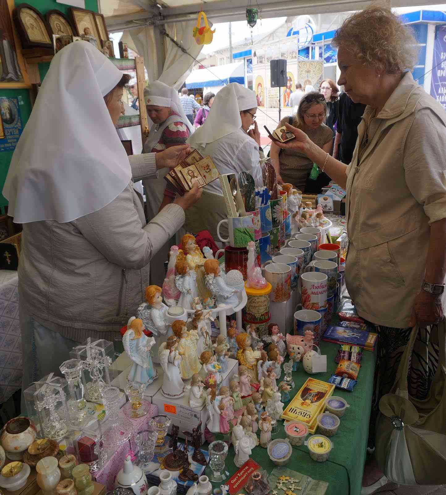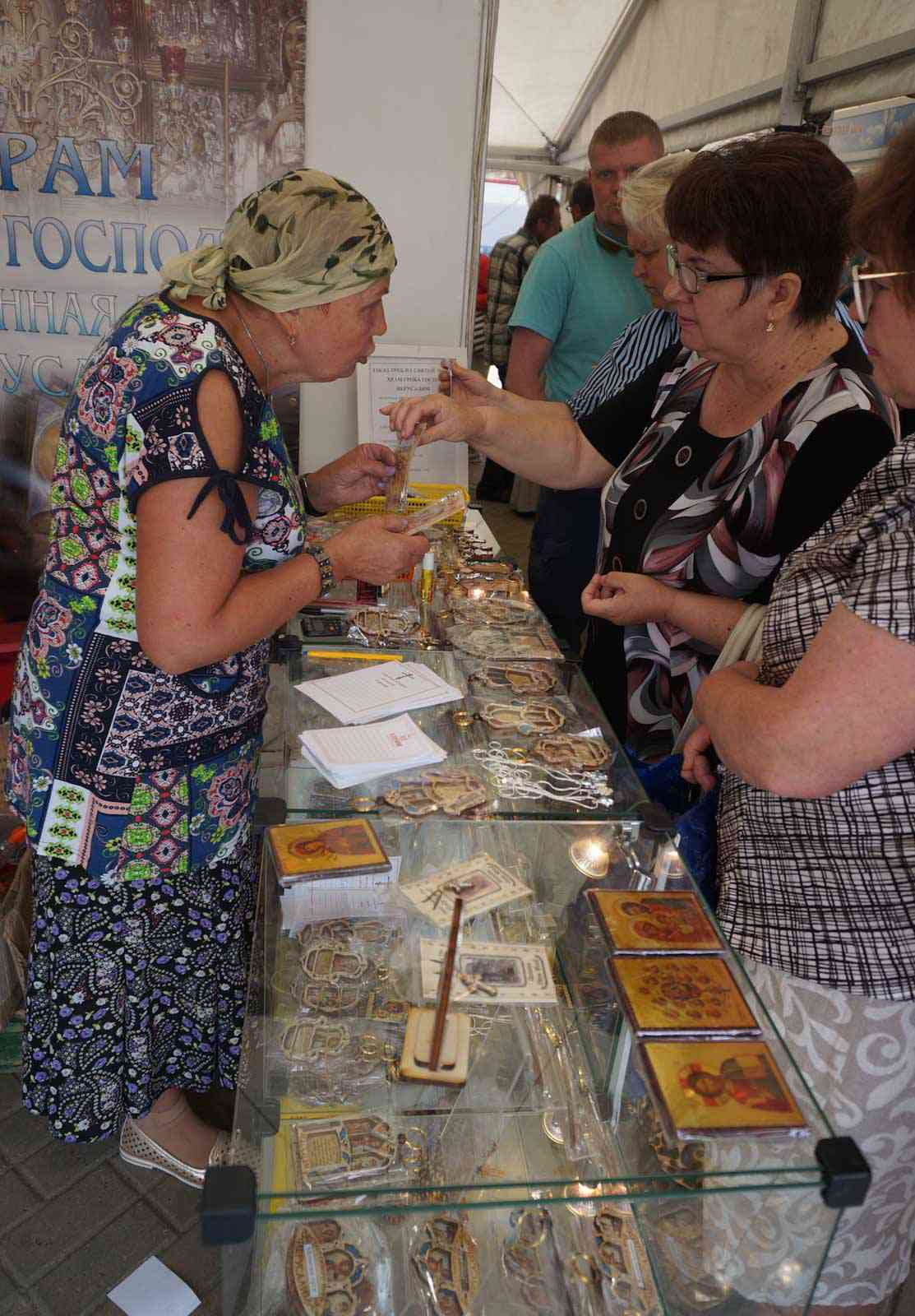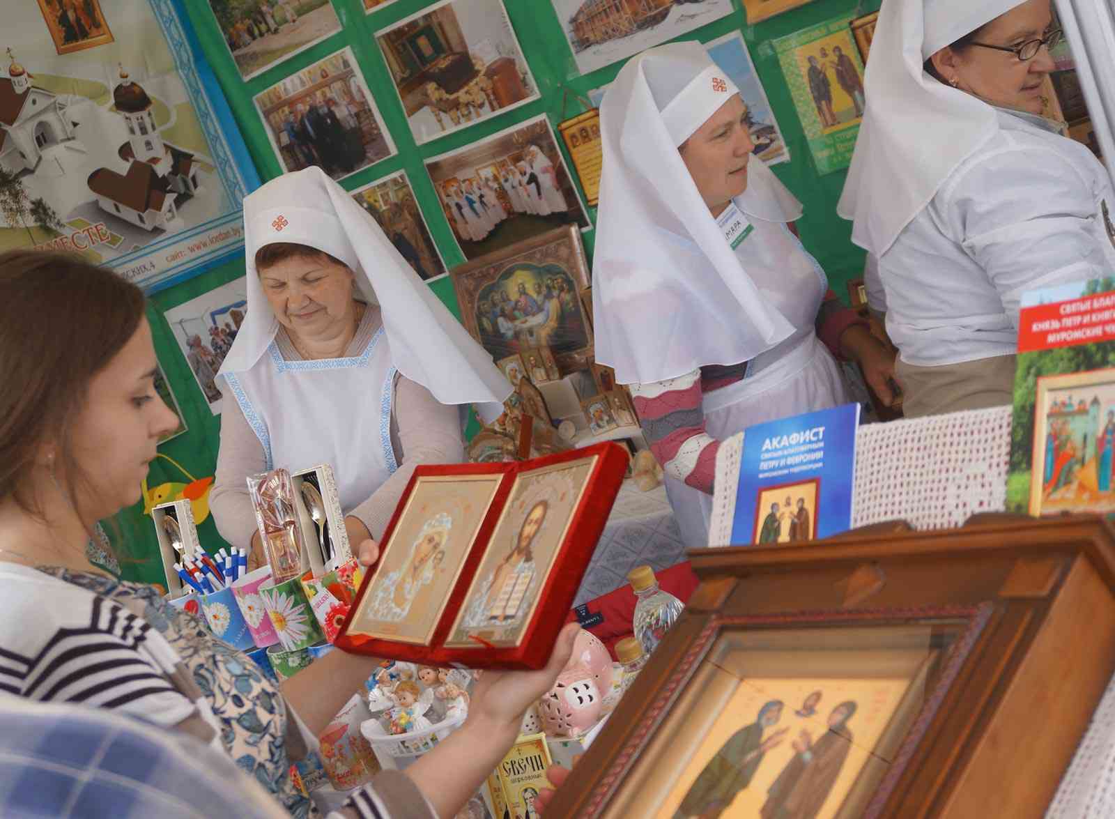 Участниками ярмарки стали православные монастыри и приходы из Беларуси, России, Украины и Греции – со Святой Горы Афон. На выставке можно купить предметы церковного обихода, утварь, облачения, иконы для дома и храма, духовную литературу. Народные мастера предлагают сувениры из природных материалов, оренбургскую паутинку, большой выбор платков и палантинов.